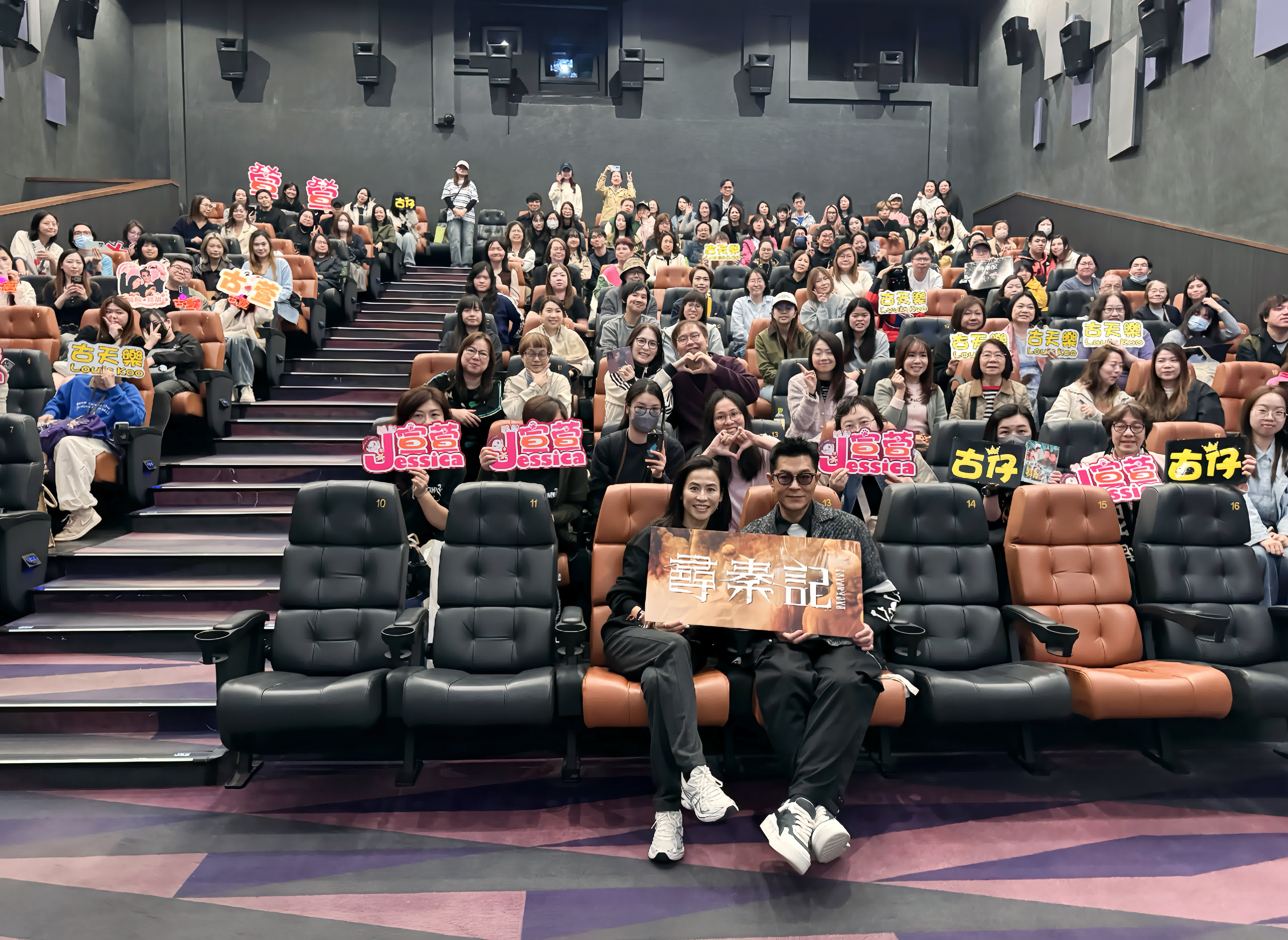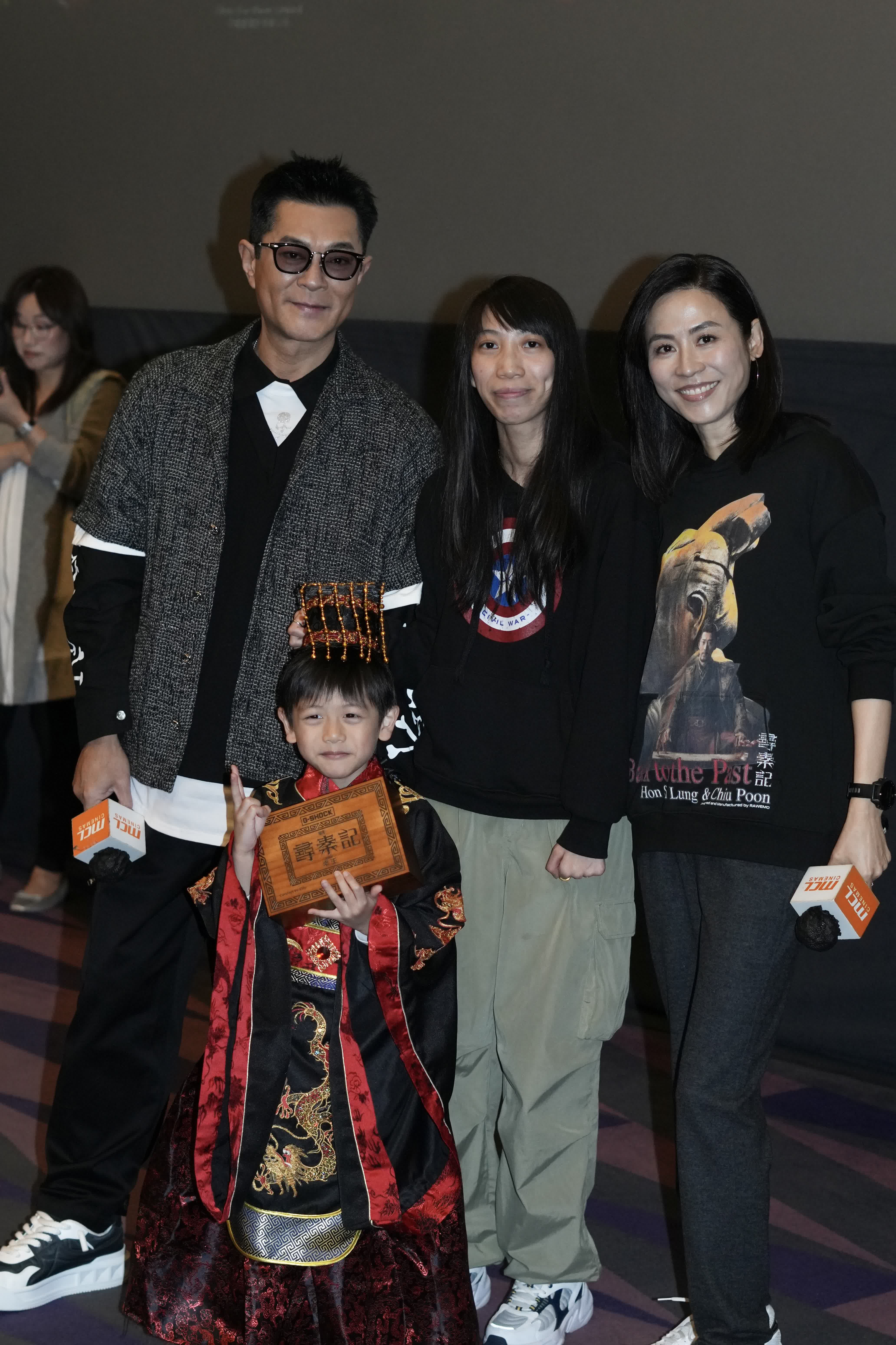 香港文匯報訊(記者 阿祖)《尋秦記》上映至今已超過兩個半月,港澳地區累計票房已逾9,600萬港元。電影公司特別在剛過去的周末推出兩天「龍芳CP」謝票,所有場次3分鐘內售罄,可見這對CP配搭大受歡迎。前日古天樂和宣萱再次出動,連場謝票,答謝觀眾一直以來對這部電影的支持。現場氣氛熱鬧,兩人對答風趣,表現鬼馬,令現場充滿歡樂氣氛,謝票場頓變成fan club聚會。宣萱更充當粉絲攝影師給古仔的粉絲與偶像拍片。而粉絲當中也有不少小朋友,跟家長一同前來追星,其中更有一位小孩尤其搶鏡,打扮成小秦王,吸引了向來喜歡小孩的古仔目光,在現場挑選觀眾玩送紀念品環節時立即被選中,古仔更上前抱抱小秦王到台前答問題,場面溫馨,這親切的一抱引來不少粉絲的艷羨目光。