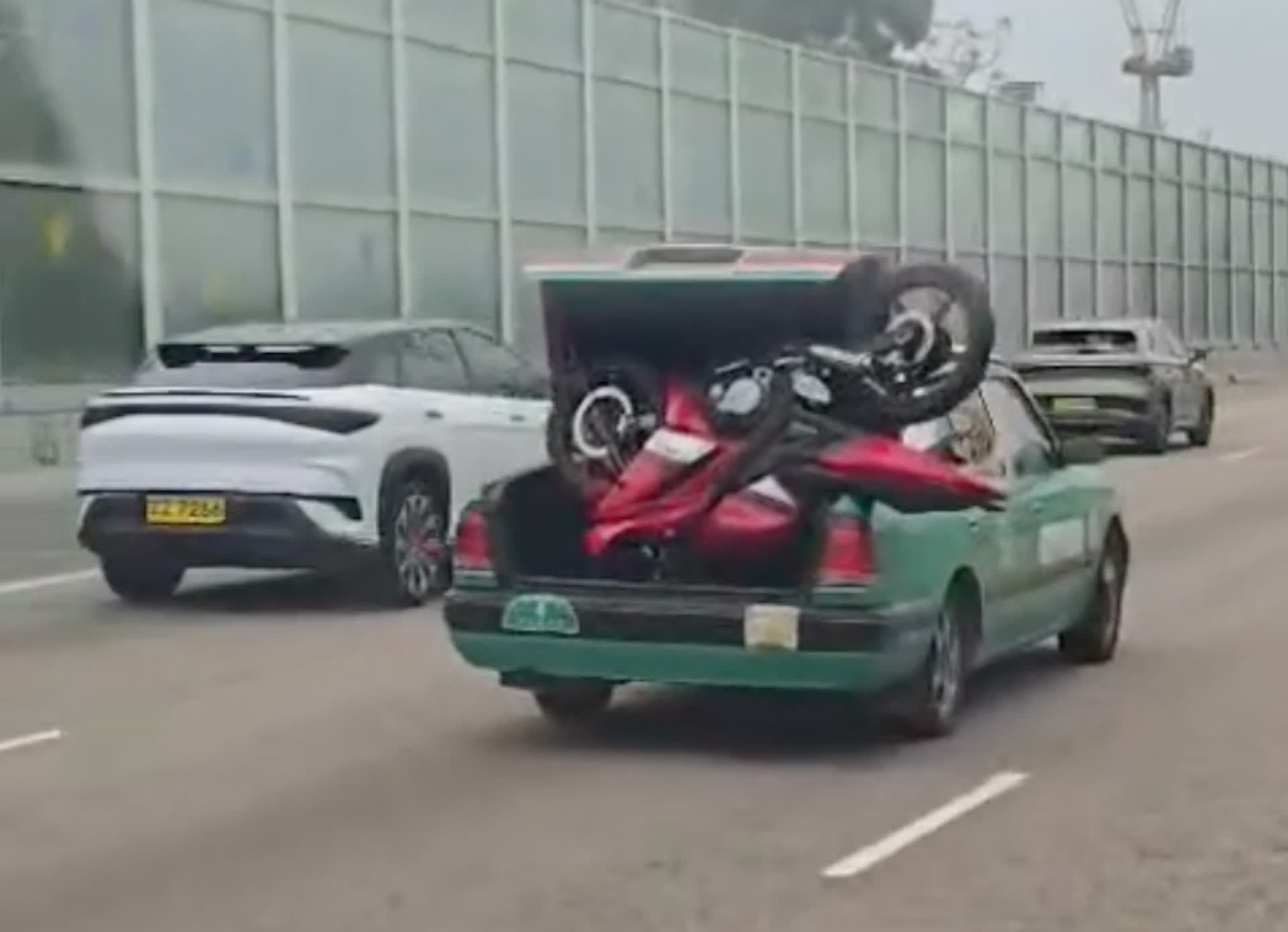 香港文匯報訊(記者 蕭景源)警方留意到近日網上流傳一段短片。片段顯示3月10日,一輛在車尾箱放置電單車的的士於元朗公路上行駛。