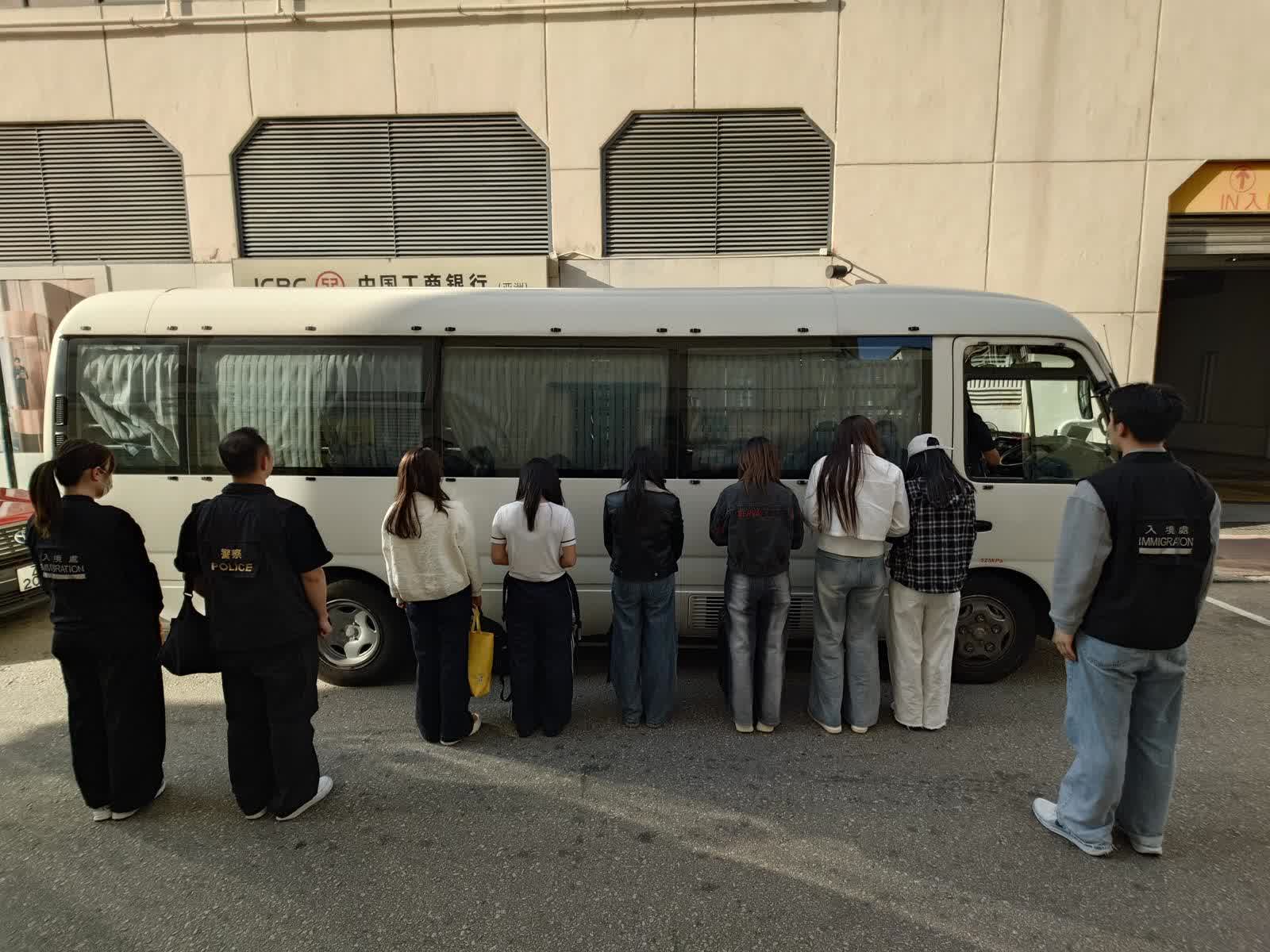 行動中,人員共拘捕共11名內地女子,年齡介乎30歲至41歲,涉嫌「違反逗留條件」。所有被捕女子現正被扣留調查,稍後將交由相關部門跟進。