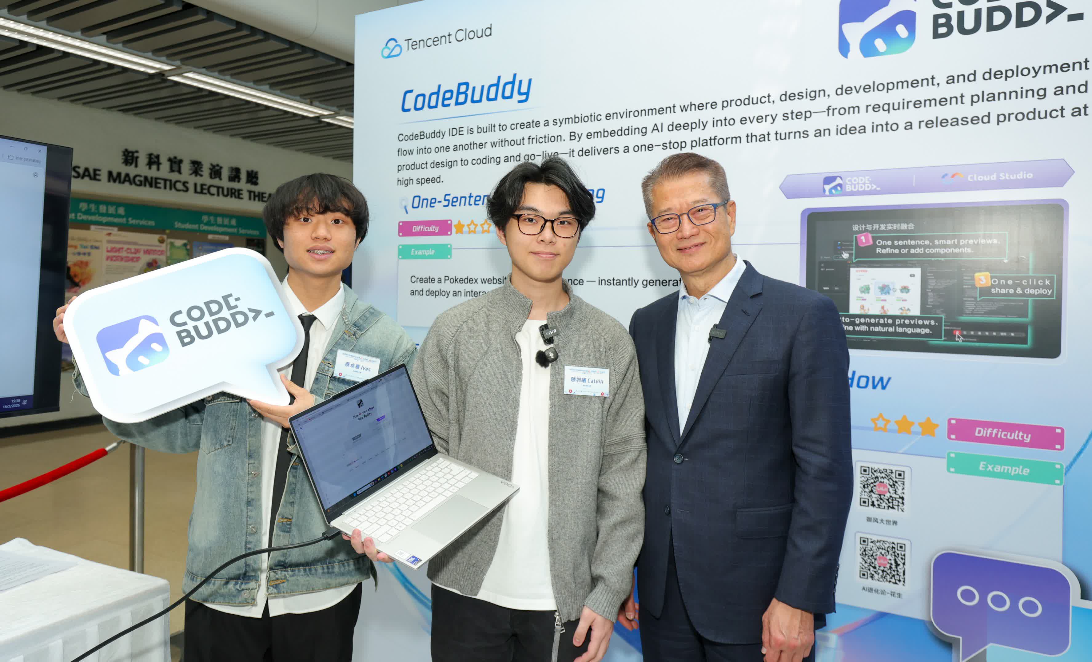 是次活動亦是騰訊「AI百校行」的香港首站,為推動AI教育普及,騰訊正式發布專為港澳教學場景打造的「騰訊青少年人工智能教育平台港澳AIGC版」。該平台集成了騰訊自研的混元大模型技術,內置AIGC創作工坊及Python編程助手等工具,大幅降低了教學與創作的門檻,是騰訊踐行技術普惠、推動AI全民教育的重要舉措。現場特設「AI應用體驗區」,學生可即場加入元寶派體驗AI社交玩法,讓學生在趣味互動中,輕鬆掌握AI的多元應用,激發創新思維。活動的焦點之一是「AI Coding實戰營」,現場展示了騰訊AI原生桌面智能體工作台WorkBuddy,在有安全防護的基礎上幫助用戶執行自動化任務。騰訊工程師現場指導城大師生參與,同學們通過CodeBuddy編程助手等工具,可以實現「對話即編程」,即便零基礎的學生,也能快速上手開發應用,打破技術學習的隔閡,親身感受AI編程的樂趣與效率。