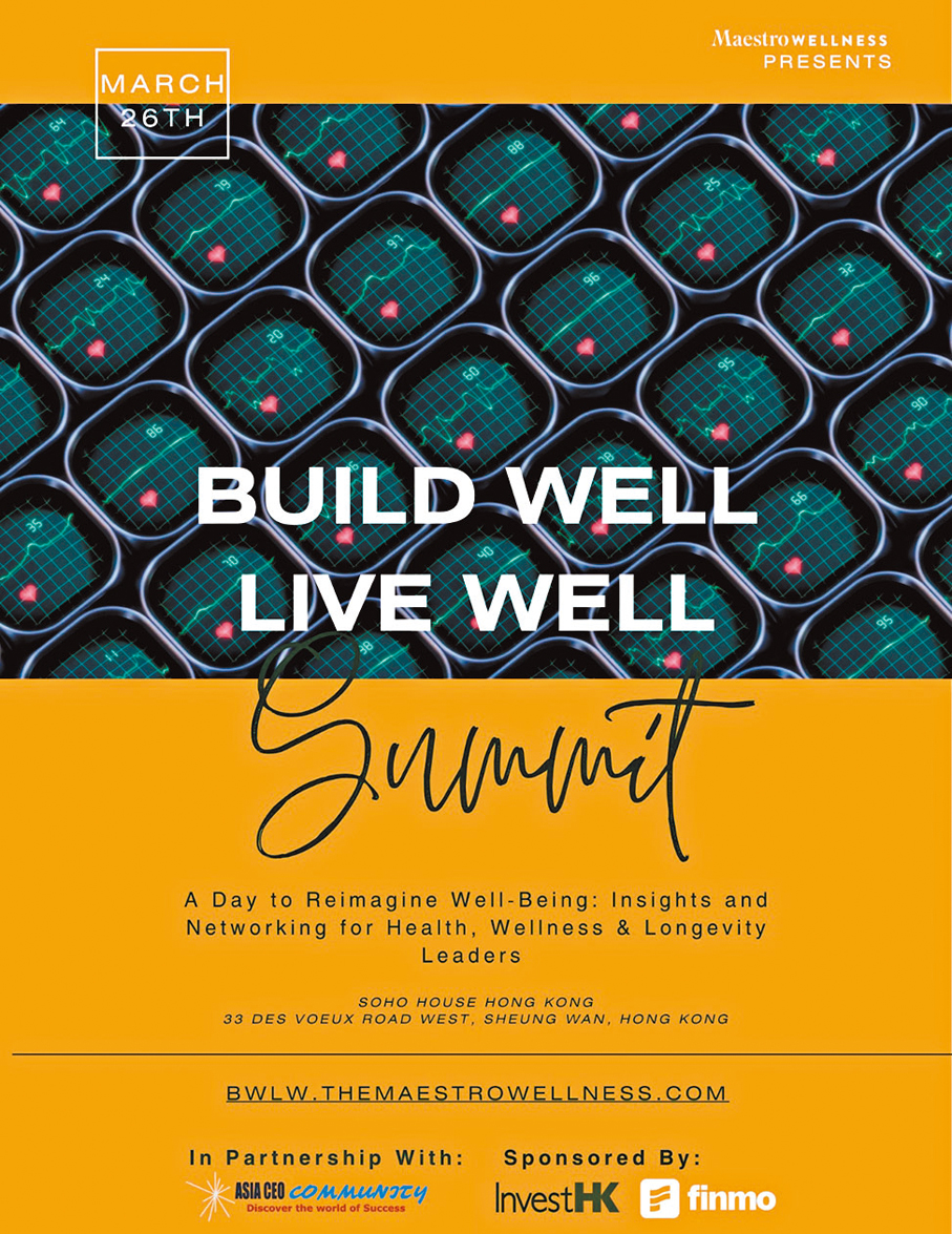 創新健康科技平台MaestroWellness將於3月26日(星期四)在Soho House舉辦香港首屆「Build Well Live Well」健康高峰會,匯聚國際政策制定者、醫療界領袖、投資者及科技先驅,探討亞洲如何以可持續方式延長健康壽命及提升財務韌性。高峰會旨在促進資本、創新科技和政策商界之間的交流,面向投資、醫療保健、企業領導和公共政策等領域的決策者,應對長壽帶來的結構性挑戰,共同塑造亞洲的長壽經濟,建立一個以健康、福祉為核心的未來。