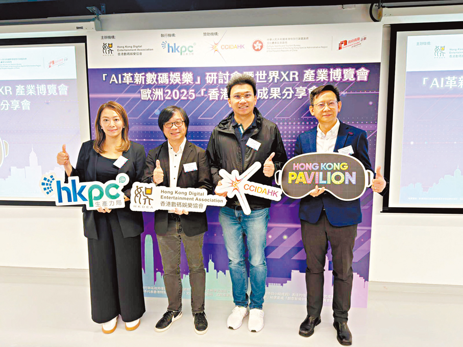 世界XR產業博覽會歐洲2025於去年12月在比利時布魯塞爾舉行,香港數碼娛樂協會作為是次「香港館」的主辦方,其協會主席彭子傑在分享會上表示,透過參與海外展覽及一系列國際交流活動,香港本地創意產業不單能擴闊視野,拓展跨國合作與商機,能深入掌握歐洲XR市場的最新發展趨勢。此外,走進國際舞台展現香港的創新實力與藝術美感,也進一步鞏固香港作為中西文化融合橋樑的地位。