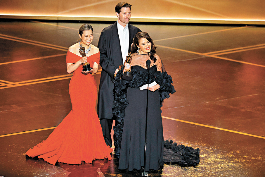 動畫監製兼導演Maggie Kang聯同另一導演Chris Appelhans及監製Michelle L.M. Wong一同登台領獎,向全球觀眾表達感謝。他們強調,作品的初心是希望向年輕觀眾傳遞一種信念——即使身處黑暗,也能活得「Golden」。