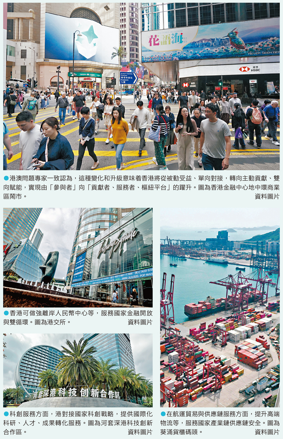 其次,香港功能將從「通道」轉向「高端服務樞紐」,由傳統貿易、物流、資金「中轉站」,升級為金融、專業服務、科創、法治、國際化對接的綜合性服務平台,承擔國家制度型開放、風險緩衝、國際規則對接等關鍵功能。第三,香港角色將從「超級聯繫人」升級為「超級增值服務者」。香港不只是連接內地與世界的橋樑,更可成為國家配置全球資源、提供高端專業服務、參與全球治理、提升國際話語權的重要支點。最後,香港的發展邏輯將從「國家支持」轉向「主動作為」。從依賴政策優惠,轉向主動謀劃、發揮所長、服務戰略,以服務能力換取發展空間,鞏固自身獨特地位。