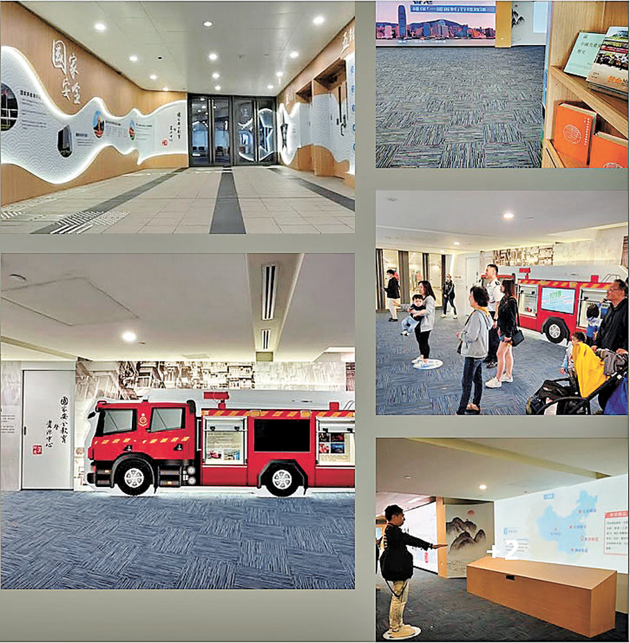 楊恩健介紹,這個位於將軍澳百勝角消防及救護學院內的國家安全教育暨資源中心,設立於2023年。中心不僅有香港國安法實施的相關資料、憲法及基本法的資料,還設有互動資訊牆,介紹國家安全20個重點領域,以及互動影相機及不同展品,講解國安知識及消防處維護國安的工作。