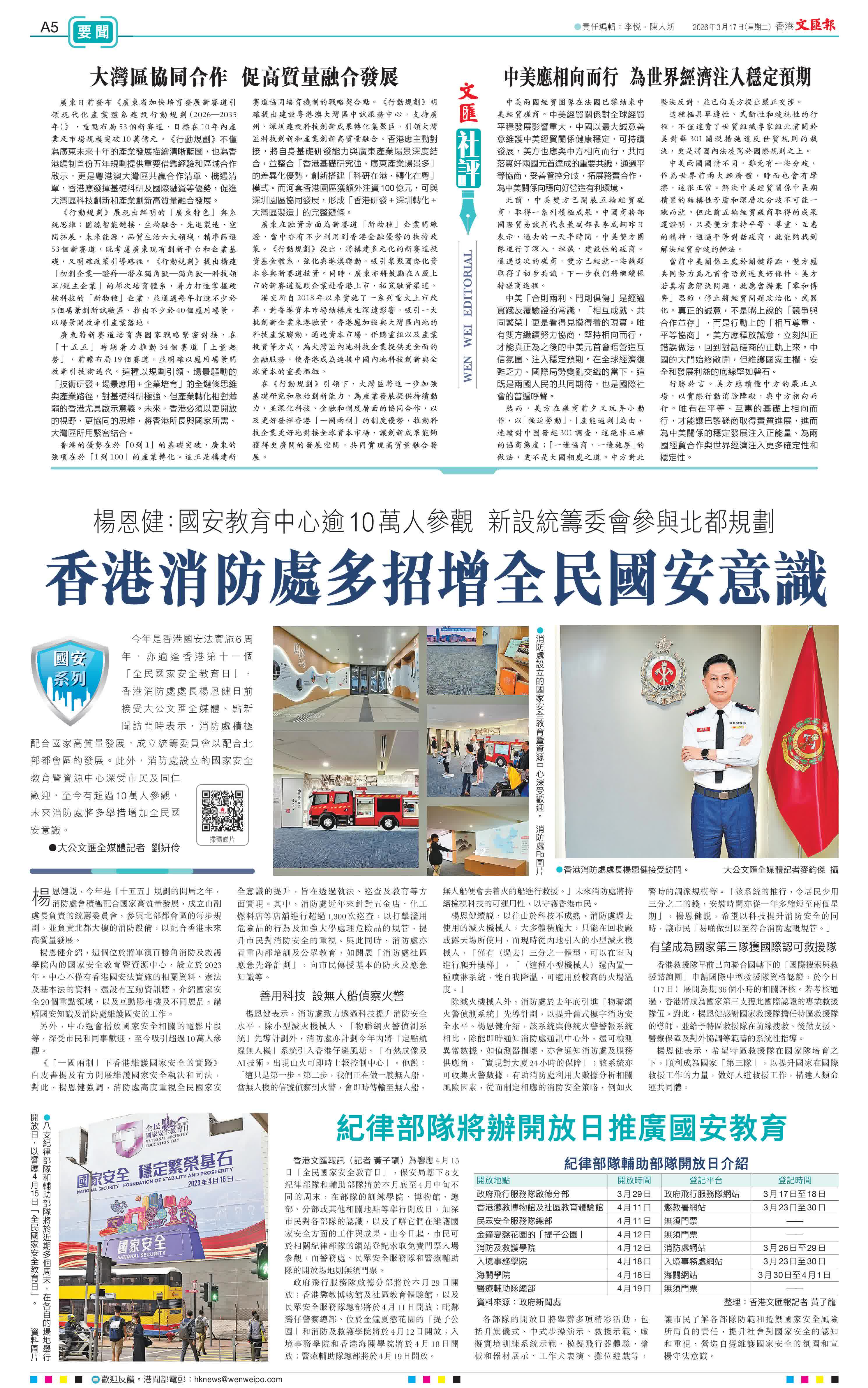 (大公文匯全媒體記者 劉妍伶)今年是香港國安法實施6周年,亦適逢香港第十一個「全民國家安全教育日」,香港消防處處長楊恩健日前接受大公文匯全媒體、點新聞訪問時表示,消防處積極配合國家高質量發展,成立統籌委員會以配合北部都會區的發展。此外,消防處設立的國家安全教育暨資源中心深受市民及同仁歡迎,至今有超過10萬人參觀,未來消防處將多舉措增加全民國安意識。