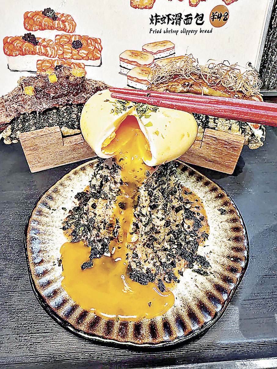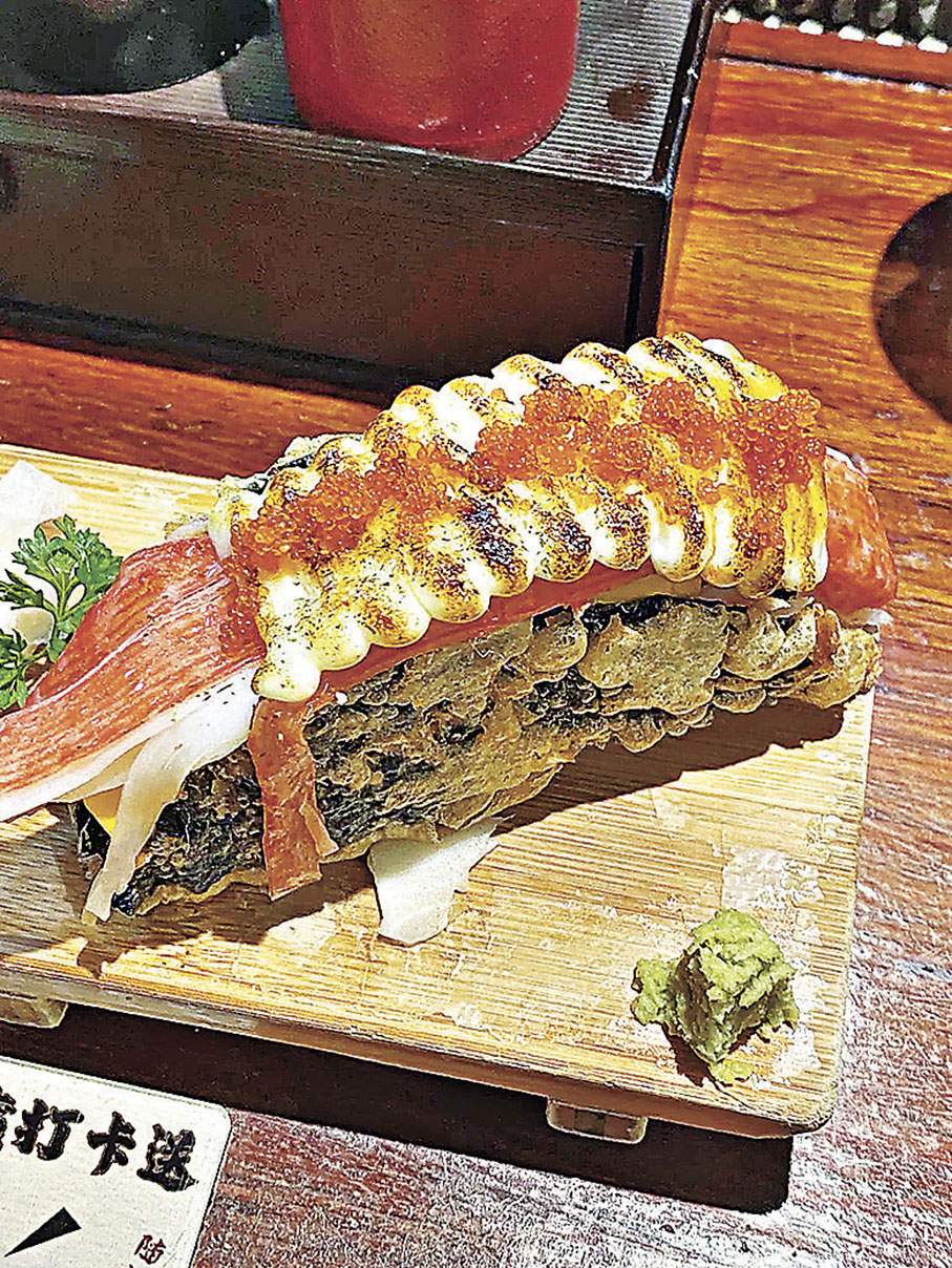 店家主打的神級TACO壽司可謂到店打卡必點,全部餡料豐富,同時分量十足。阿佘點了多款該店招牌菜式,包括賣相吸引的「奶香咖喱烏冬」(¥59)、「流心雙層肉餅飯」(¥78)及店家極具特色、餐廳主打比手掌大的神級TACO。阿佘打卡的「照燒鰻魚TACO」(¥39)」,鋪上面的超級長身鰻魚,鰻魚控肯定大滿足。另一款她喜愛的「焦糖鵝肝TACO」(¥38),頂層大塊鵝肝,中間夾住玉子燒、芒果、肉鬆等,肉嫩多汁餡料足,也是必試名物。另外,還有「雪花鵝肝肥牛TACO」(¥39)