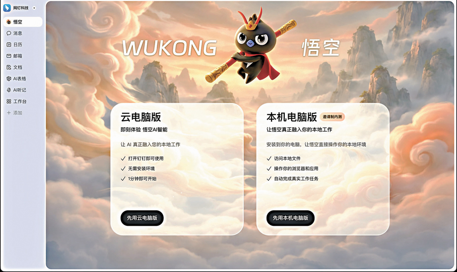 香港文匯報訊(記者 周曉菁)阿里巴巴(9988)昨發布全球首個企業級AI原生工作平台「悟空」,稱其是一款獨立應用,即日起啟動邀請測試,並將直接內嵌至釘釘體系。「悟空」正式上線後,全球用戶可直接下載使用,也支援連結微信、Slack等全球主流IM平台。