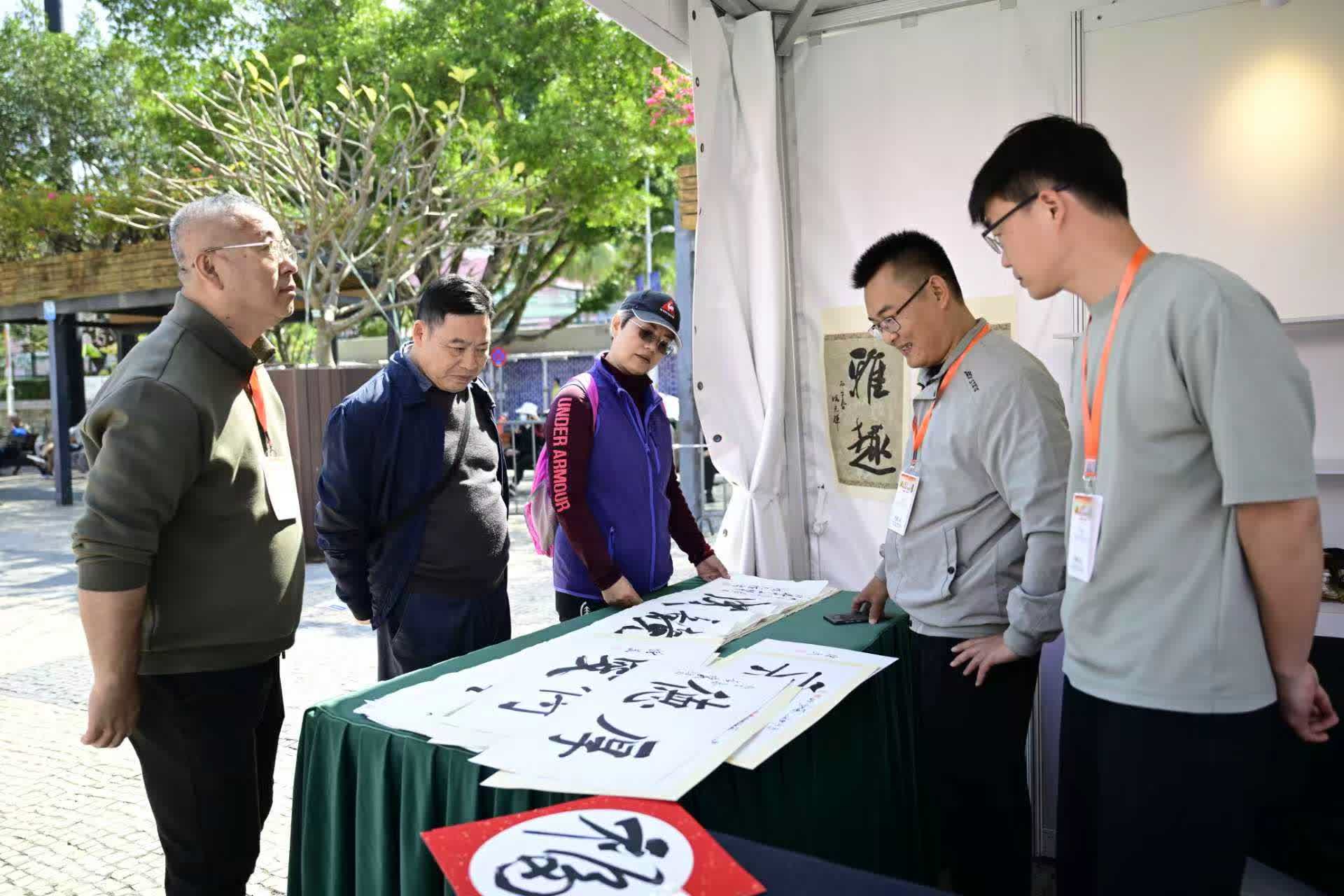 七百多年岐濠同源,是兩地合作最深厚的底色,也是這場盛會最動人的旋律。活動現場,中山長洲醉龍舞與澳門醉龍舞同台展演,剛勁靈動的舞姿勾勒出同根同源的文化共鳴;民樂演奏《七子之歌》悠揚響起,曲作者、中山籍音樂家李海鷹親臨現場,熟悉的曲調牽起岐濠兩地的悠悠鄉情;書法互動區圍繞「天下為公」「博愛」現場揮毫,墨香氤氳間傳遞中山的人文精神;沙溪醒獅、西區醉龍等非遺展演搭配經典民樂演奏,全天候的文化演出讓現場掌聲此起彼伏;巧思十足的文創展區,更讓香山文脈變得觸手可及。這些沉浸式的文化體驗,讓經貿活動有了溫度,讓澳門市民在購買中山產品的同時,也能沉浸式感受香山文化的魅力,為後續文化交流與產業合作埋下情感種子。