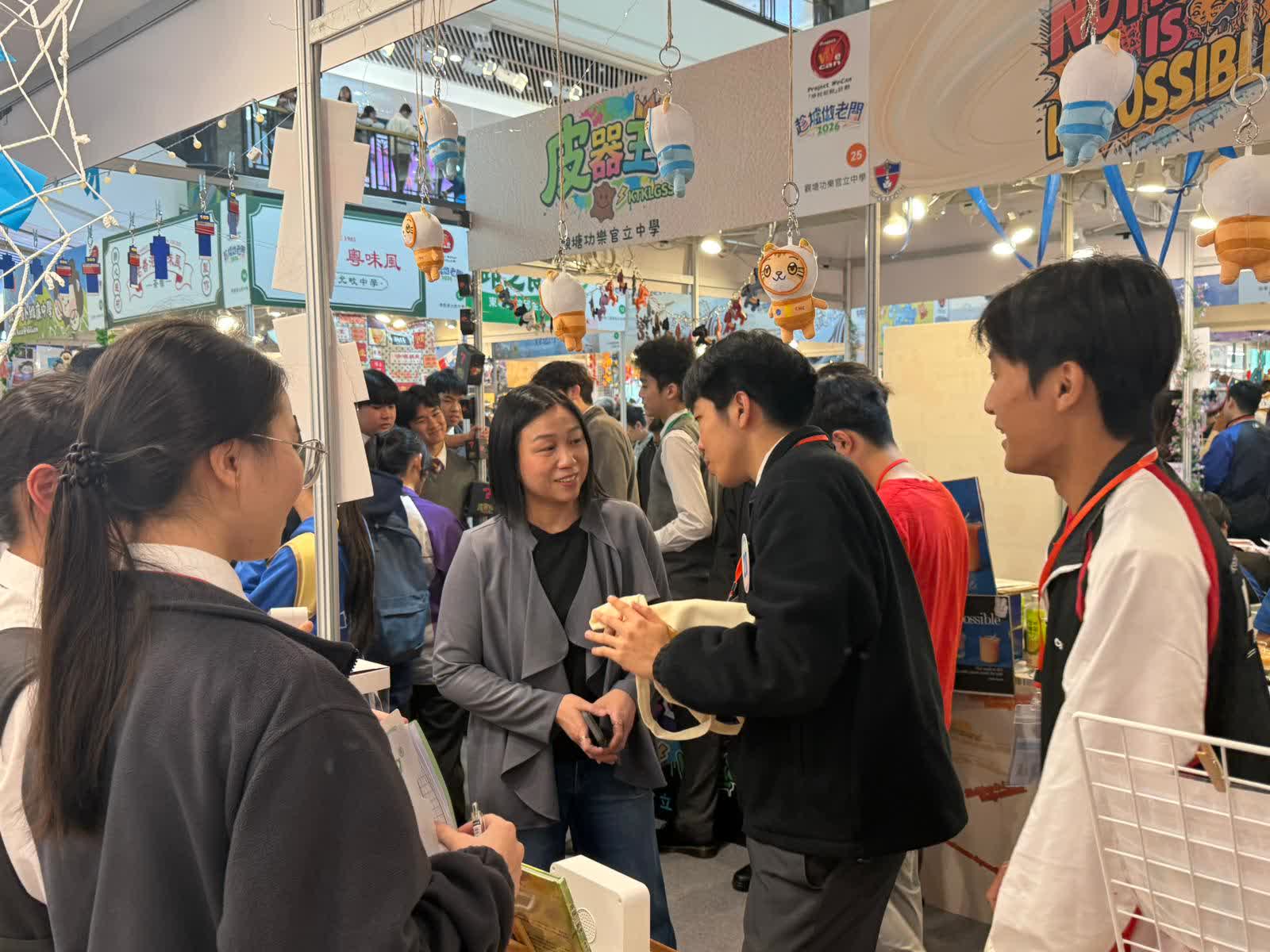 香港四邑商工總會陳南昌紀念中學積極參與「趁墟做老闘2026」大型室內展銷會。(校方供圖)