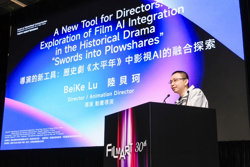 跨越千年的故事如何以更震撼的視覺效率抵達當代觀眾?論壇上,《太平年》導演陸貝珂首次深度揭秘AI技術在歷史劇製作中的實戰應用。陸貝珂介紹,《太平年》采用8K前期拍攝、純4K+16bit後期流程方案,實拍素材原始清晰度是常見的AI生成視頻60多倍,色彩可調節性也要高得多。所以,劇中雖然有大量工作用AI完成,但不會直接用AI視頻畫面作為最終全畫幅成品,主要用於工作流程加速、素材資產製作等等方面。