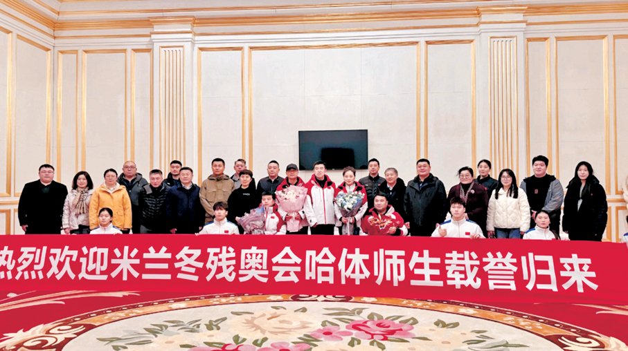 香港文匯報訊 據中新網報道,在剛剛落幕的米蘭冬殘奧會上,中國輪椅冰壺隊在混合團體決賽中摘得銀牌,教練員岳清爽、李建銳和隊員王海濤、張強等人周二(17日)載譽回到家鄉黑龍江,黑龍江省殘聯、哈爾濱體育學員等領導和運動員到哈爾濱西站迎接。