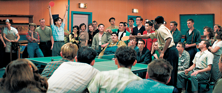 《Marty Supreme:癲造之才》最令人不安之處,在於它毫不留情地展現了追夢如何變成一種自我消耗。馬提為了籌集再次出國的經費,不惜利用情人和朋友,攀附邪惡富商及過氣女明星(桂莉芙柏德露飾)。他甚至在大庭廣眾之下接受乒乓球拍打屁股的羞辱性懲罰,只為換取一張前往東京的機票。