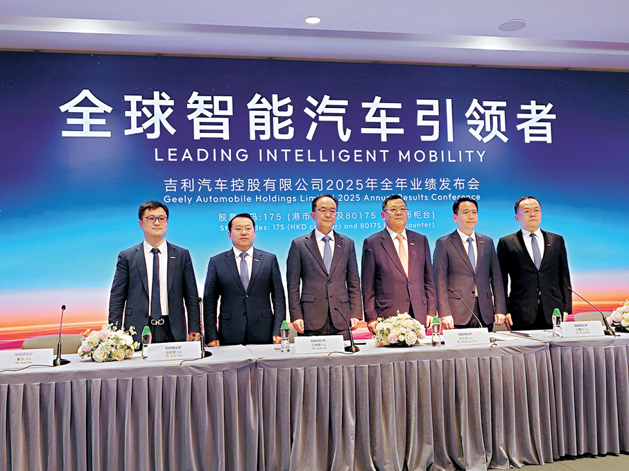 根據業績公告,吉利汽車2025年收入為3,452.32億元(人民幣,下同),按年升25%;純利則為168.52億元,按年增長約0.2%;每股基本盈利1.67元,按年升1%,派每股末期息0.5港元。