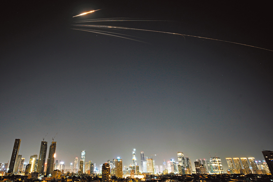 《以色列時報》報道,以色列軍方18日較早時證實,伊朗最新一波導彈攻擊以色列,中部與南部多地響起防空警報。美聯社拍攝畫面顯示以色列上空出現「導彈雨」,造成至少兩人死亡和多人受傷,以及公路和建物損毀,特拉維夫一處火車站也遭導彈碎片擊中。