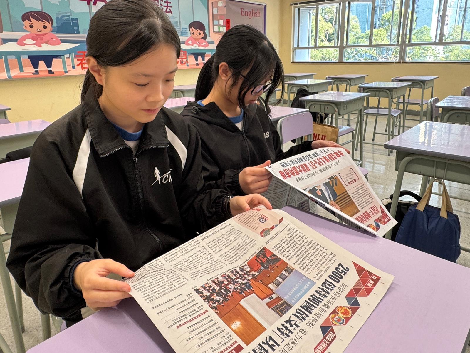 從各校發來的圖片可見,同學們或圍坐研討,或執筆摘錄,認真研讀兩會開幕、政府工作報告、國家發展規劃等重要新聞。有學校組織「兩會新聞分享會」,讓學生輪流解讀關注的議題;亦有學校將讀報與通識課結合,引導學生從科技創新、大灣區建設、青年發展等角度思考國家大勢。同學們紛紛表示,透過閱讀大文報刊,不僅增進了對國家發展成就的認識,更學會了從新聞中提煉觀點、形成論述。