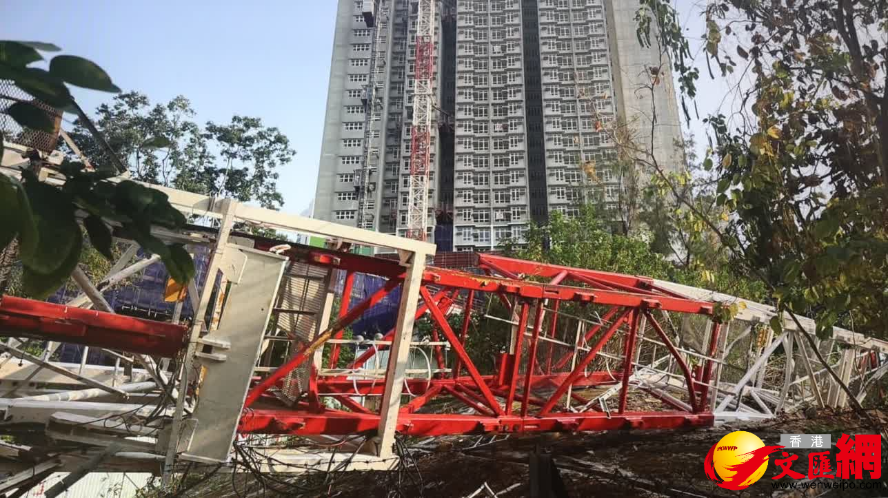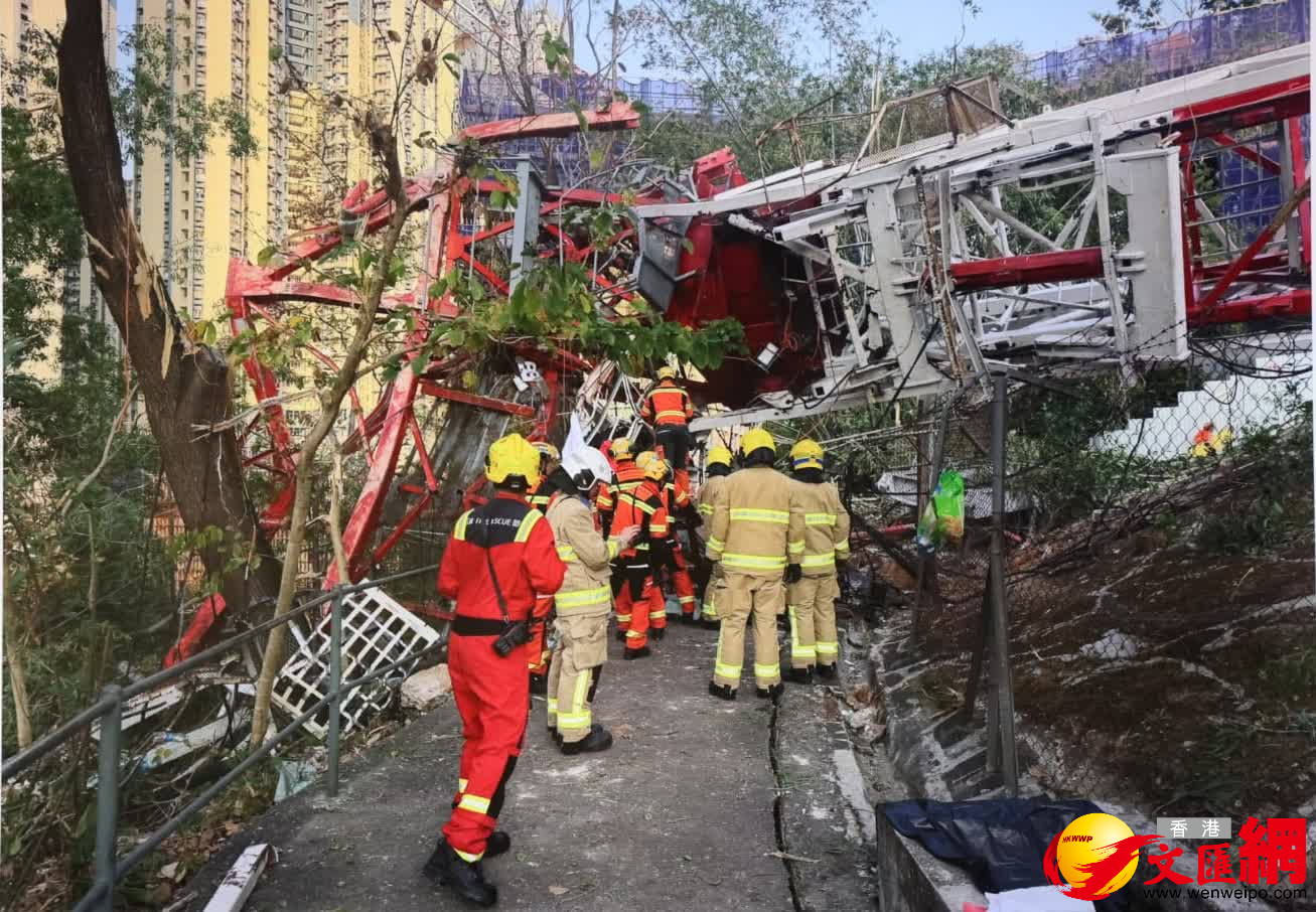 事發現場為一幢興建中的樓宇,旁邊的天秤位於40樓以上的部分,倒塌於地盤對落的山坡位置,倒塌部分約45米長,人員發現在倒塌天秤的駕駛室內,有一地盤工人被困,在上前與其接觸時,救護人員已證實他死亡。消防處隨即調派高空拯救專隊及災難應變救援隊,把被困的死者移離駕駛室。另外,人員在山坡位置調派無人機協助搜索是否有其他人士被困,最後確認事故中並無其他被困人士。