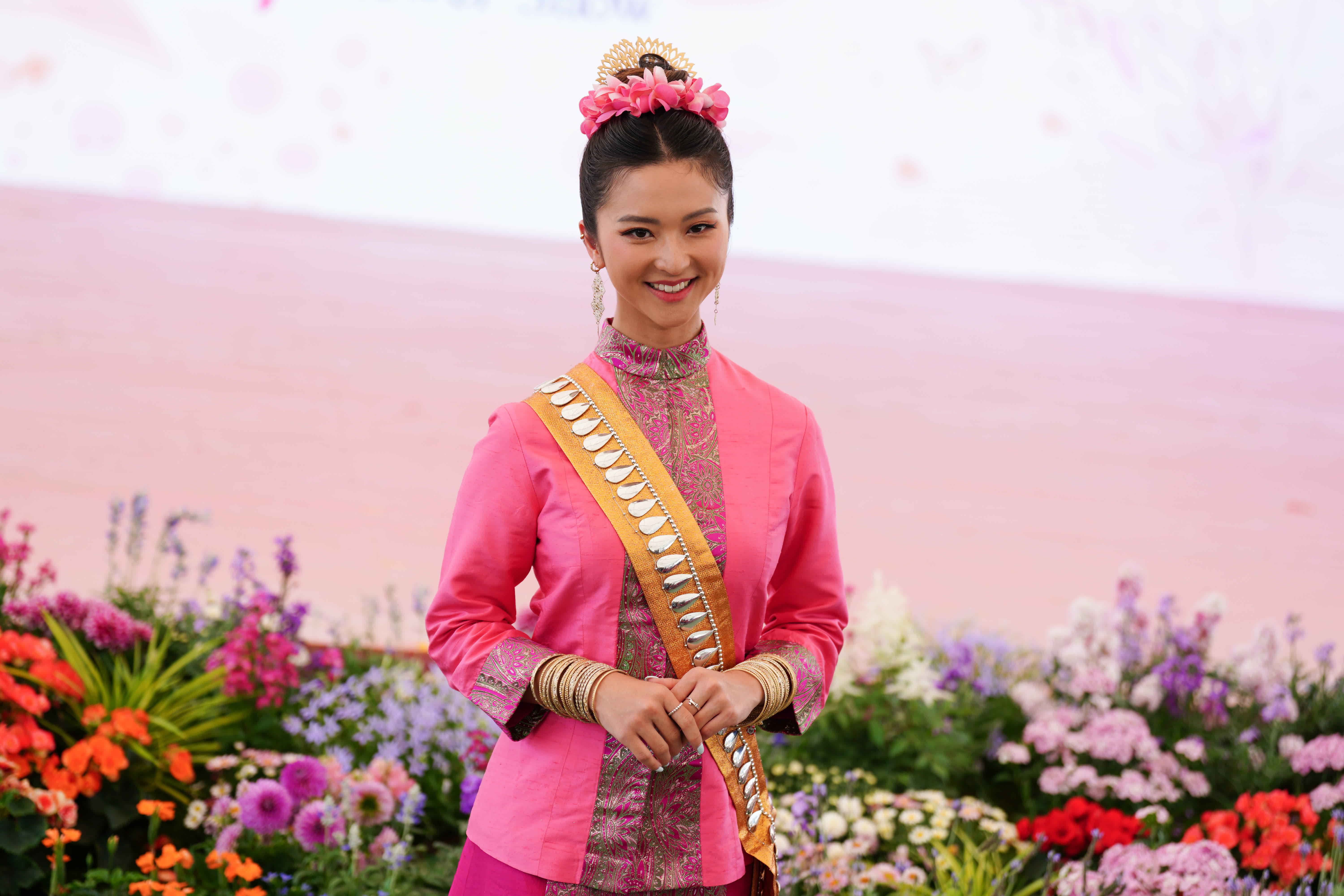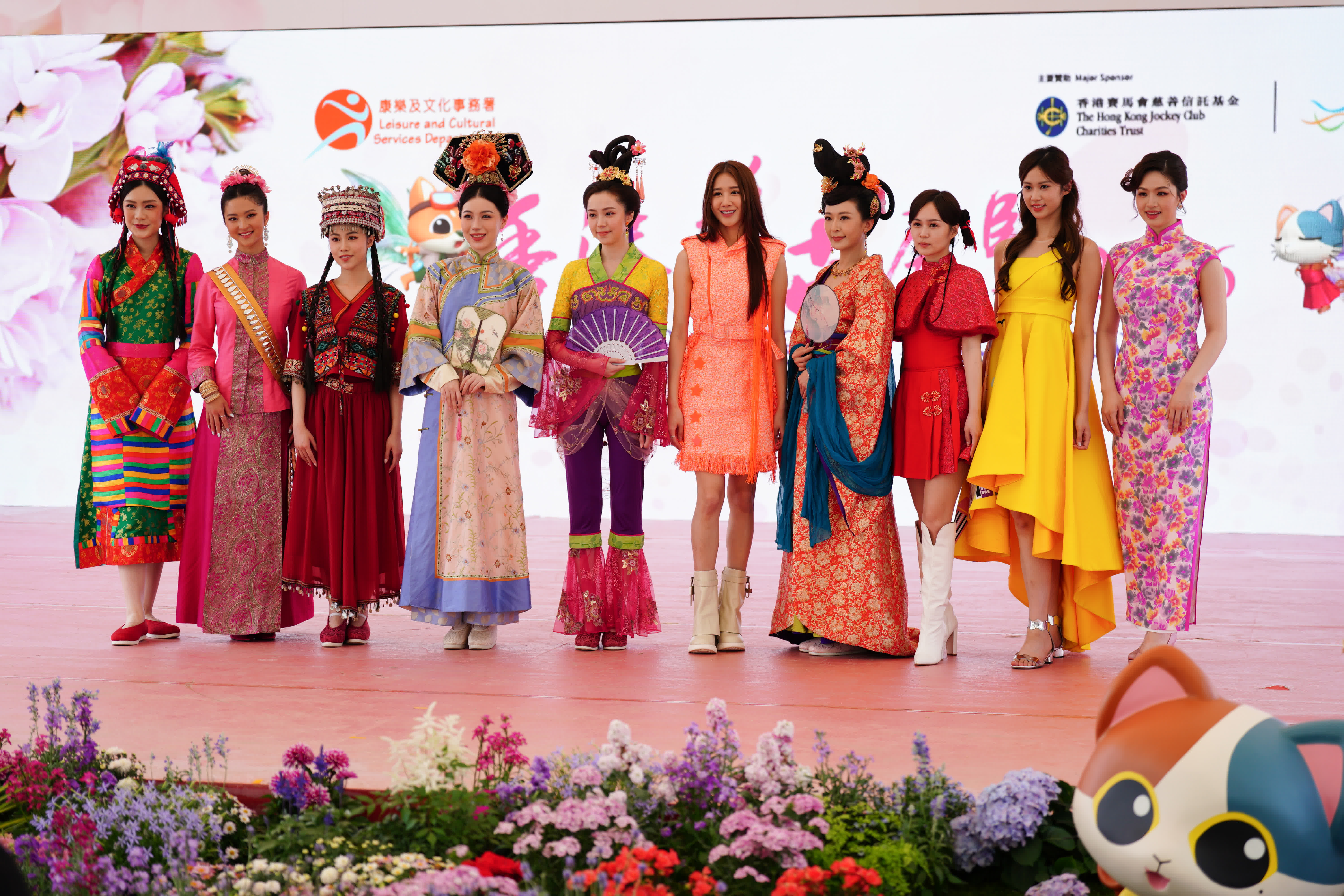 一眾模特兒以繽紛絢麗的造型亮相,穿梭於各具特色的主題展區。其中,李尹嫣以旗袍造型展現東方韻味;楊梓瑤與黃泳嘉則以型格時裝演繹現代風尚;梁超怡的可愛國風打扮,為春日添上幾分俏皮。古代美人陣容同樣矚目,李君妍、李海銅及吳芷靖雍容華貴的姿態,彷彿從畫卷中走出。鐘翠詩與莫凡身穿精緻的少數民族服飾,展現多元文化色彩;而蔡華英的泰式美人造型,更是異域風情十足,與宛若萬千彩雀的花卉互相輝映,盡顯芳華。活動現場,幾位藝員亦抽空接受點新聞訪問,分享參與活動的近況。