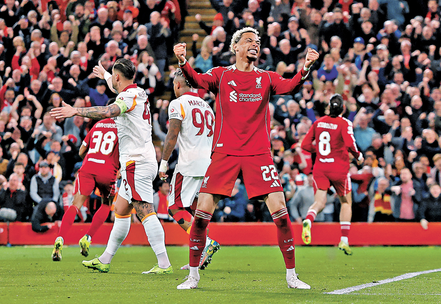 香港文匯報訊(記者 張發兒)歐聯16強次回合賽事昨日香港時間凌晨上演,利物浦重返主場成功扭轉敗局,以4:0 大勝加拉塔沙雷,總比數4:1晉級,八強將硬撼「英超剋星」巴黎聖日耳門(PSG)。