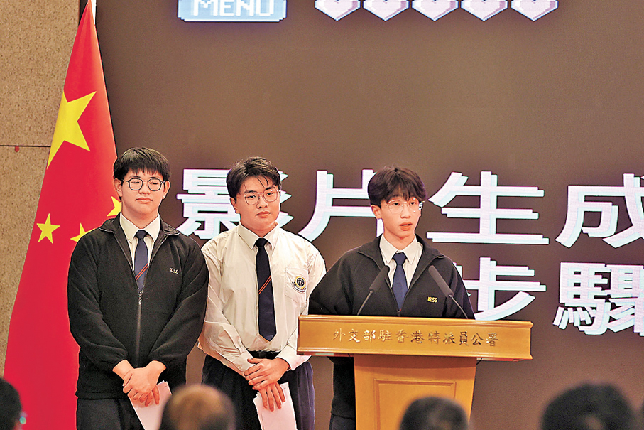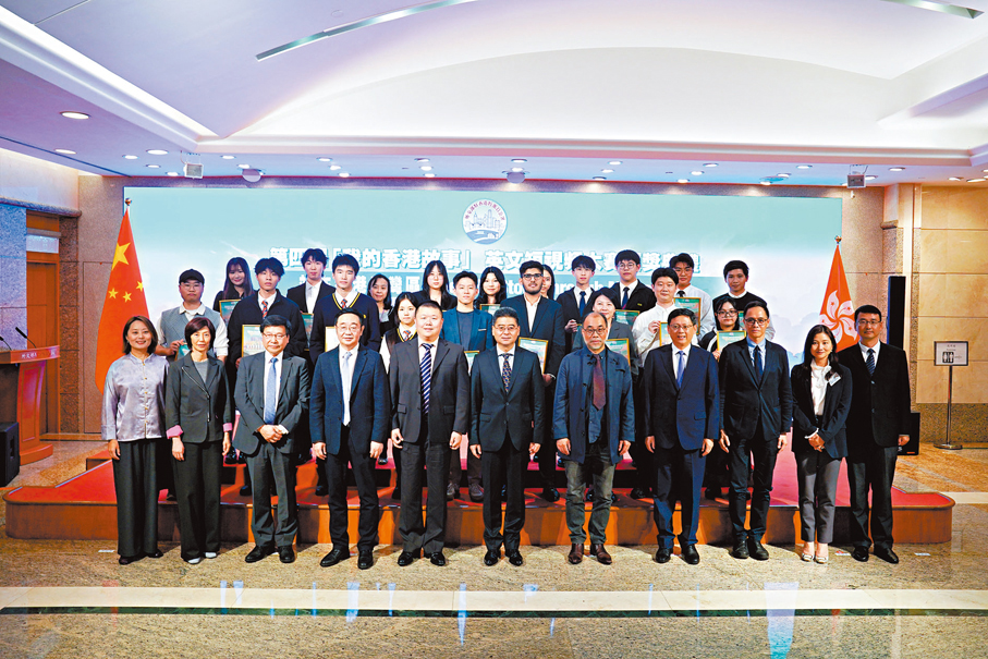 國家「十五五」規劃綱要明確提出,支持香港鞏固和提升競爭優勢、更好融入和服務國家發展大局,讓香港發展迎來新機遇。外交部駐港特派員公署昨日舉辦第四屆「我的香港故事」英文短視頻大賽的頒獎儀式,今年大賽首次以「站在香港看灣區」為主題,共收到110份參賽作品,社交平台瀏覽量共逾400萬,社會影響顯著,讓世界看到了「一國兩制」的實踐活力和中國式現代化的蓬勃生機。 ●香港文匯報記者 史柳藝