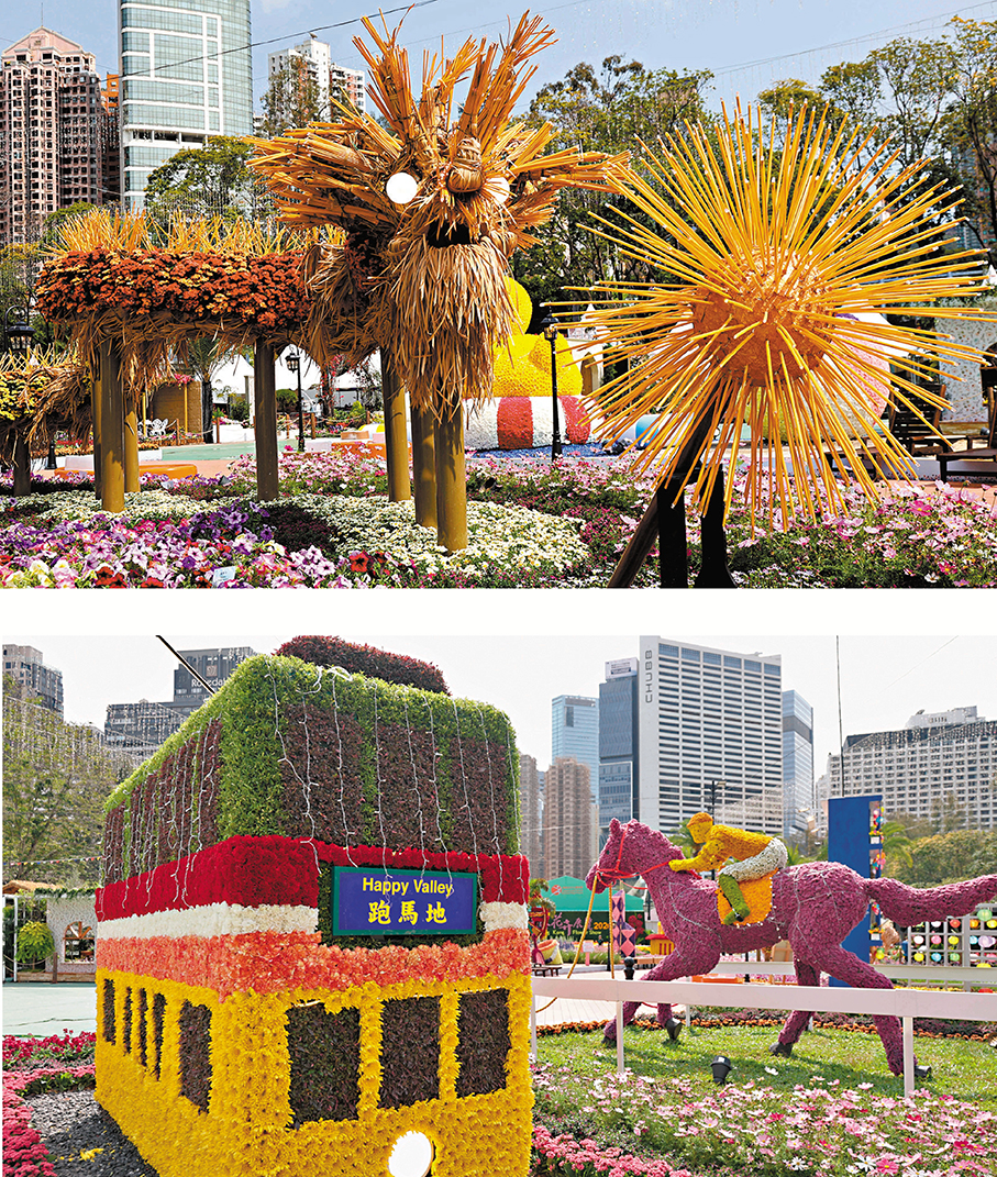 「港島花徑」則帶領遊人穿梭香港摩天輪、中銀大廈和大坑舞火龍等港島地標和場景,而「九龍剪影匯繁花」呈現九龍城寨、彩虹邨、金魚街和廟街等喚起港人集體回憶的九龍風貌。