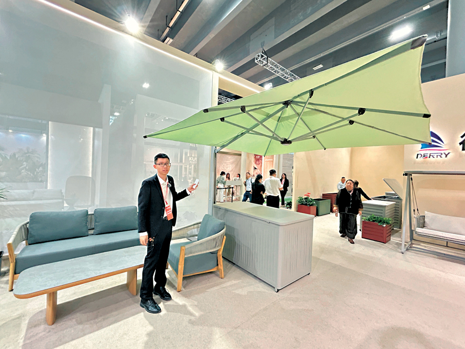 本次展會推出了史上最大規模的戶外家居展區。廣東省德銳智能家居作為行業頭部企業抓住國內公共空間釋放、陽台擴容及露營熱潮的機遇,從外銷為主轉向內外銷並重。公司國內銷售總監陳樹浩介紹,戶外涼亭、陽光房、餐桌椅等產品深受市場青睞,去年內銷超過2,000萬元,實現翻倍,今年目標是5,000萬元。目前,德銳家居還緊跟消費趨勢布局戶外廚房,除了用戶使用體驗,更強化產品的社交屬性。