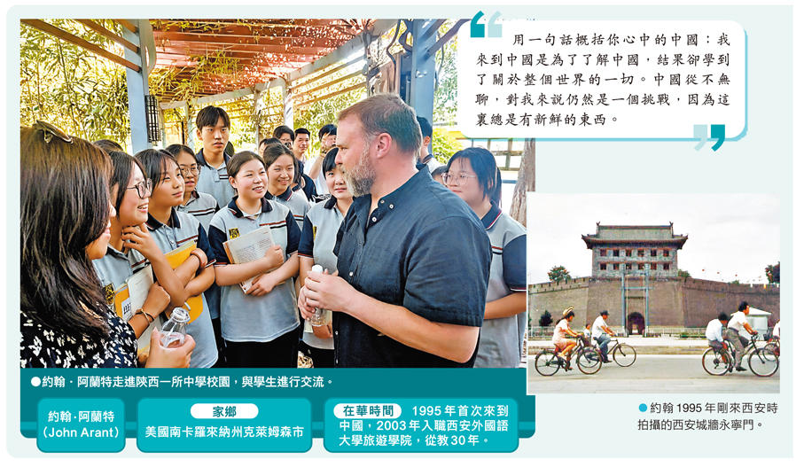 「課堂上我教學生們英語,課堂下,他們會向我傳授包括歷史、詩歌、音樂和節慶活動的知識。」約翰·阿蘭特告訴香港文匯報記者,「當學生們分享對國家熱愛之情時,會顯得格外興奮。他們對中國文化與歷史的自豪感溢於言表,我希望也能像他們一樣了解和熱愛這一切。我在他們身上學到了很多中國文化知識,我鼓勵他們通過各種社交媒體平台,用英語向全世界推介中國文化,讓更多外國人愛上中國。」