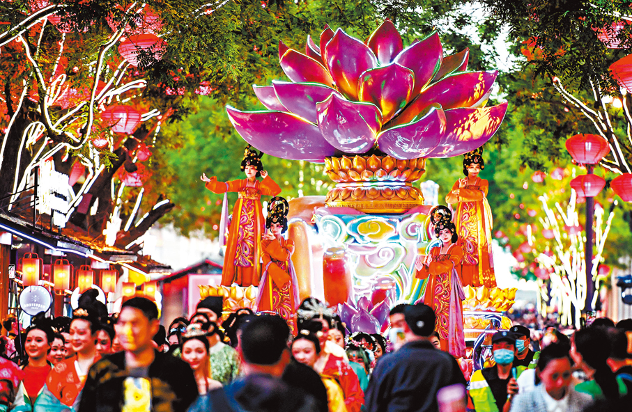 (香港文匯報記者 李陽波 陝西西安報道)初春時節的古城西安,寒意漸疏,春意初萌。傍晚時分,華燈初上,西安城牆永寧門上的長安燈會流光溢彩,許多身着唐裝漢服的少男少女往來其間。「一瞬間,我彷彿和他們一起回到了一千多年前的大唐盛世。」看着眼前的奇景,已在陝西西安工作生活30年的西安外國語大學美國外教約翰·阿蘭特感慨萬分。「記得我剛來西安拍的第一張照片就是永寧門,那個時候這座威武的城樓更多的是城市的象徵和符號,如今卻融入大眾生活,成為人們可觸摸、可品味、可體驗、可分享、可共鳴的鮮活存在。」約翰·阿蘭特告訴香港文匯報記者,在全球化日益深入的今天,中國文化已不再是簡單的「輸出符號」,而是注重「講好故事」和「可觸可感」,成為全球最受歡迎的共享產品。