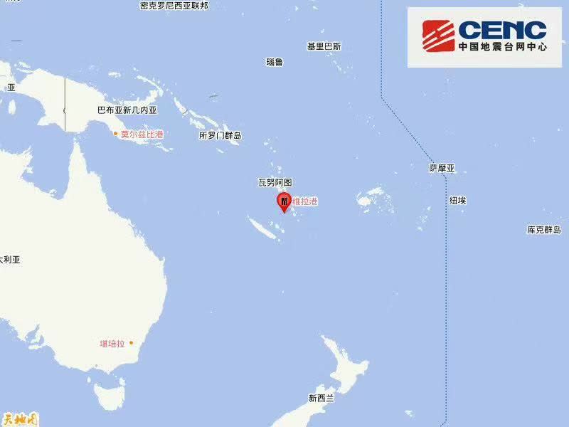 中國地震台網正式測定:3月20日10時30分,在瓦努阿圖群島(南緯19.40度,東經168.15度)發生6.0級地震,震源深度10公里。