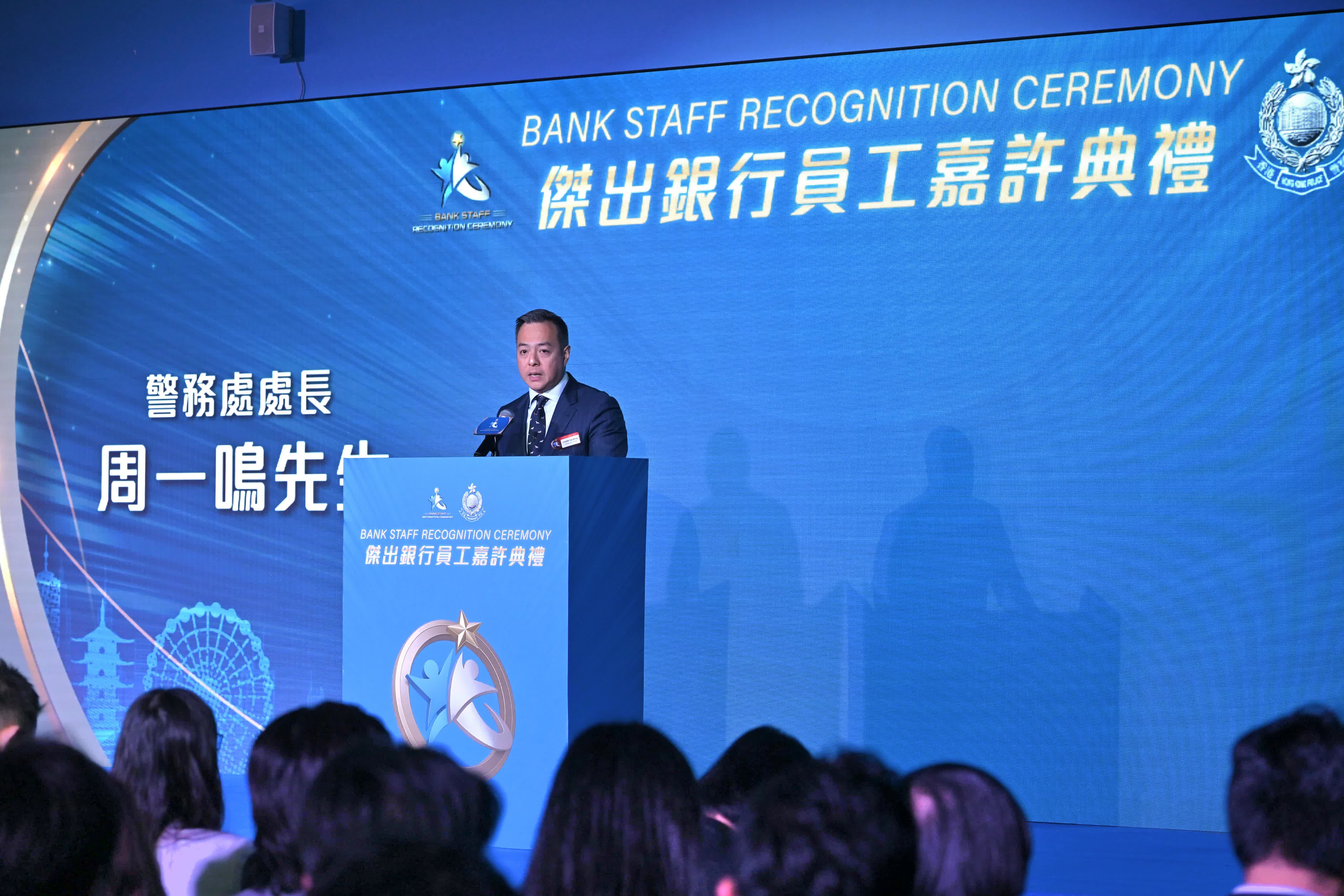 出席典禮的主禮嘉賓還包括警務處副處長(行動)葉雲龍、刑事及保安處處長陳東、金管局助理總裁(法規及打擊清洗黑錢)陳景宏,以及銀行公會代表楊靈鳳。