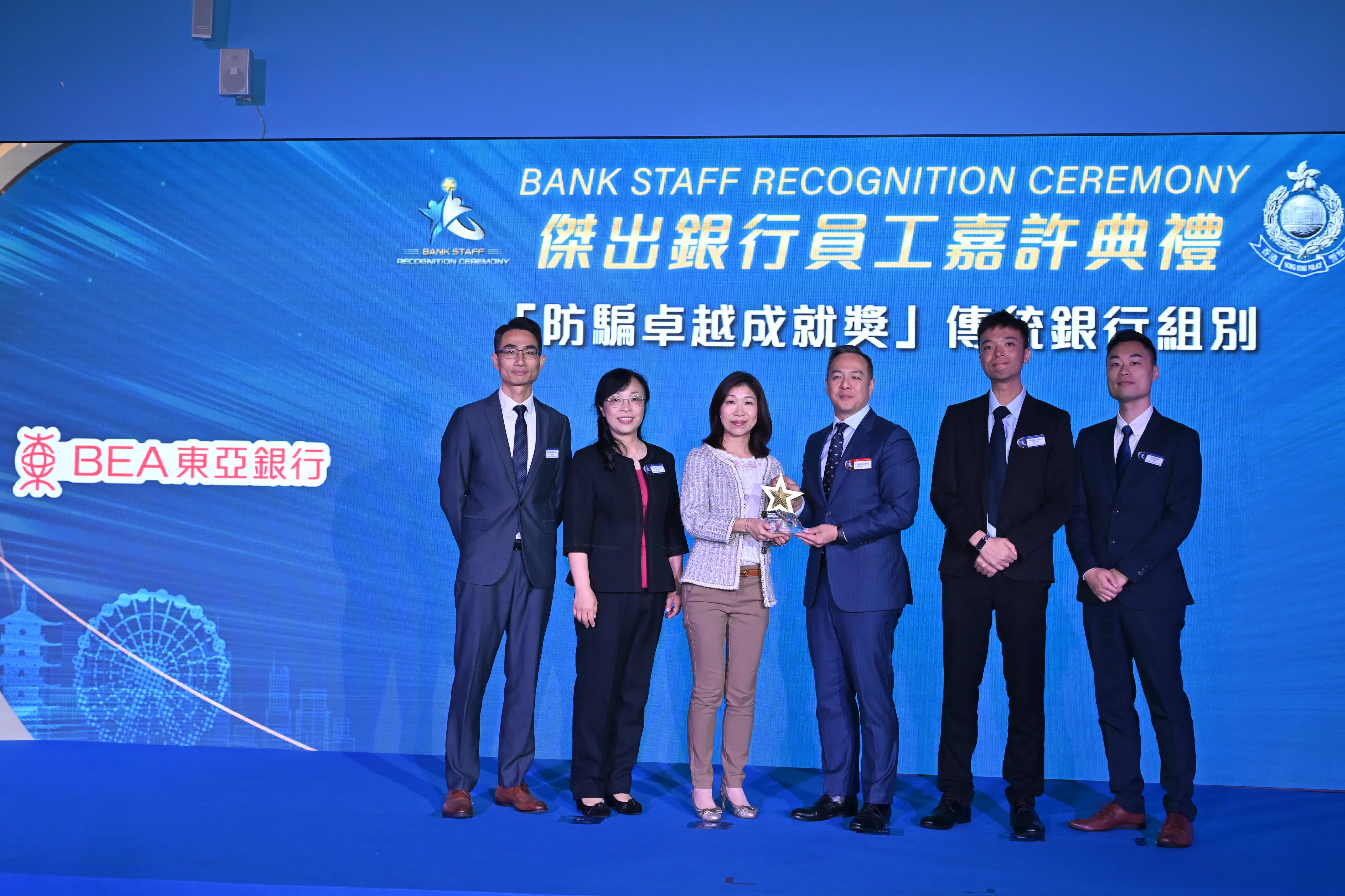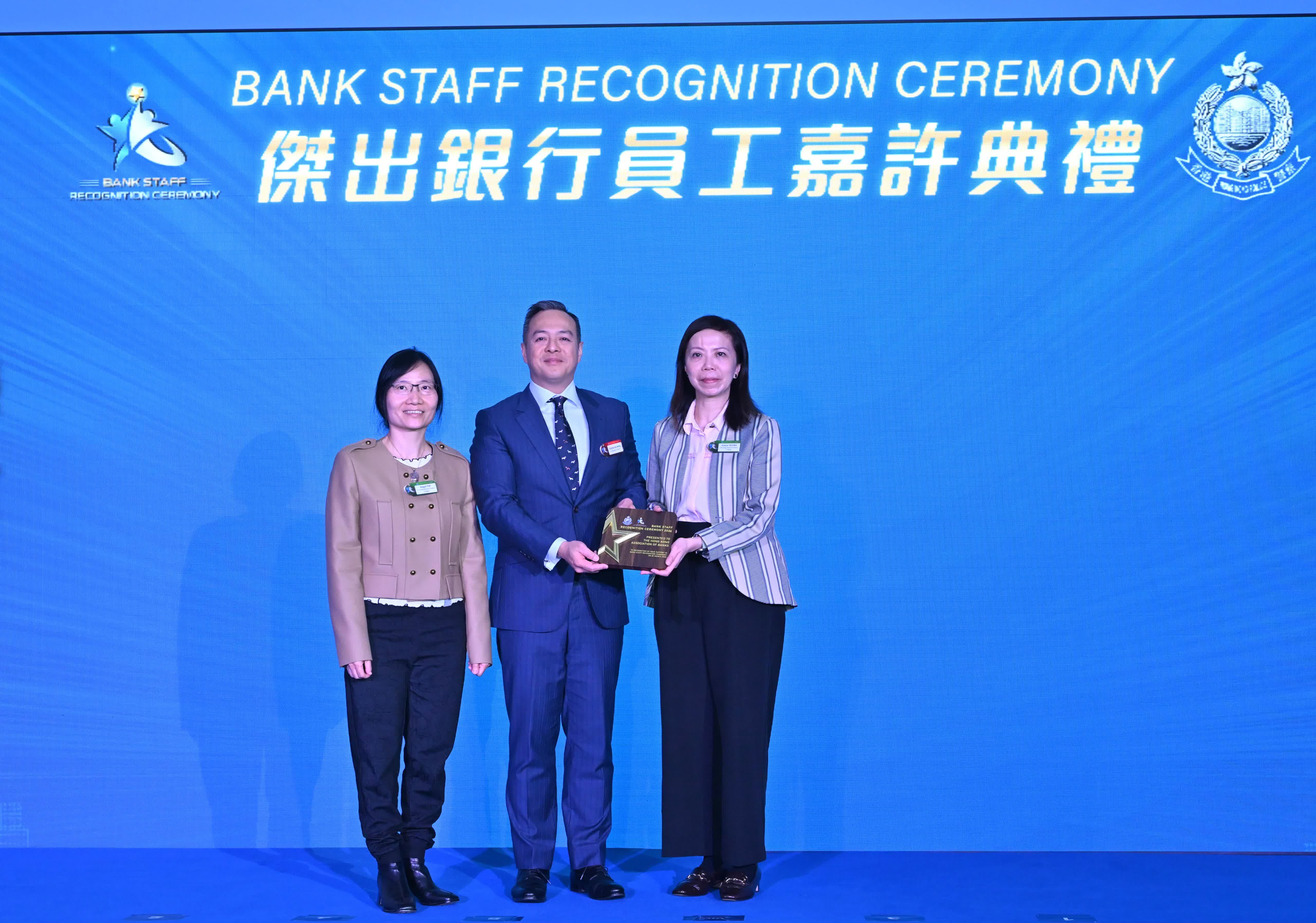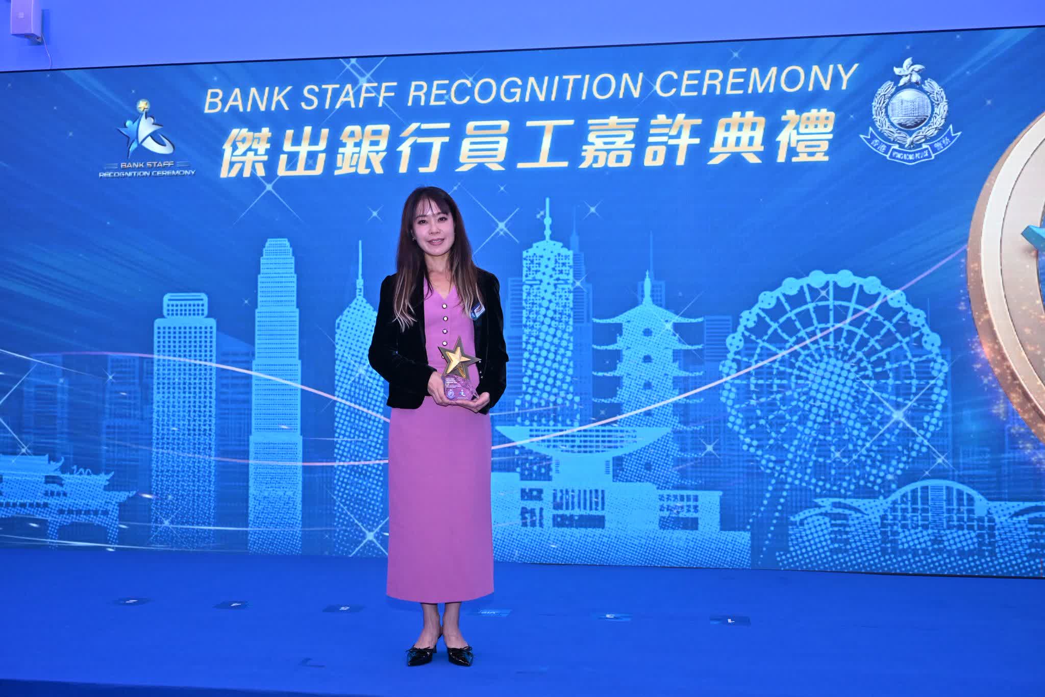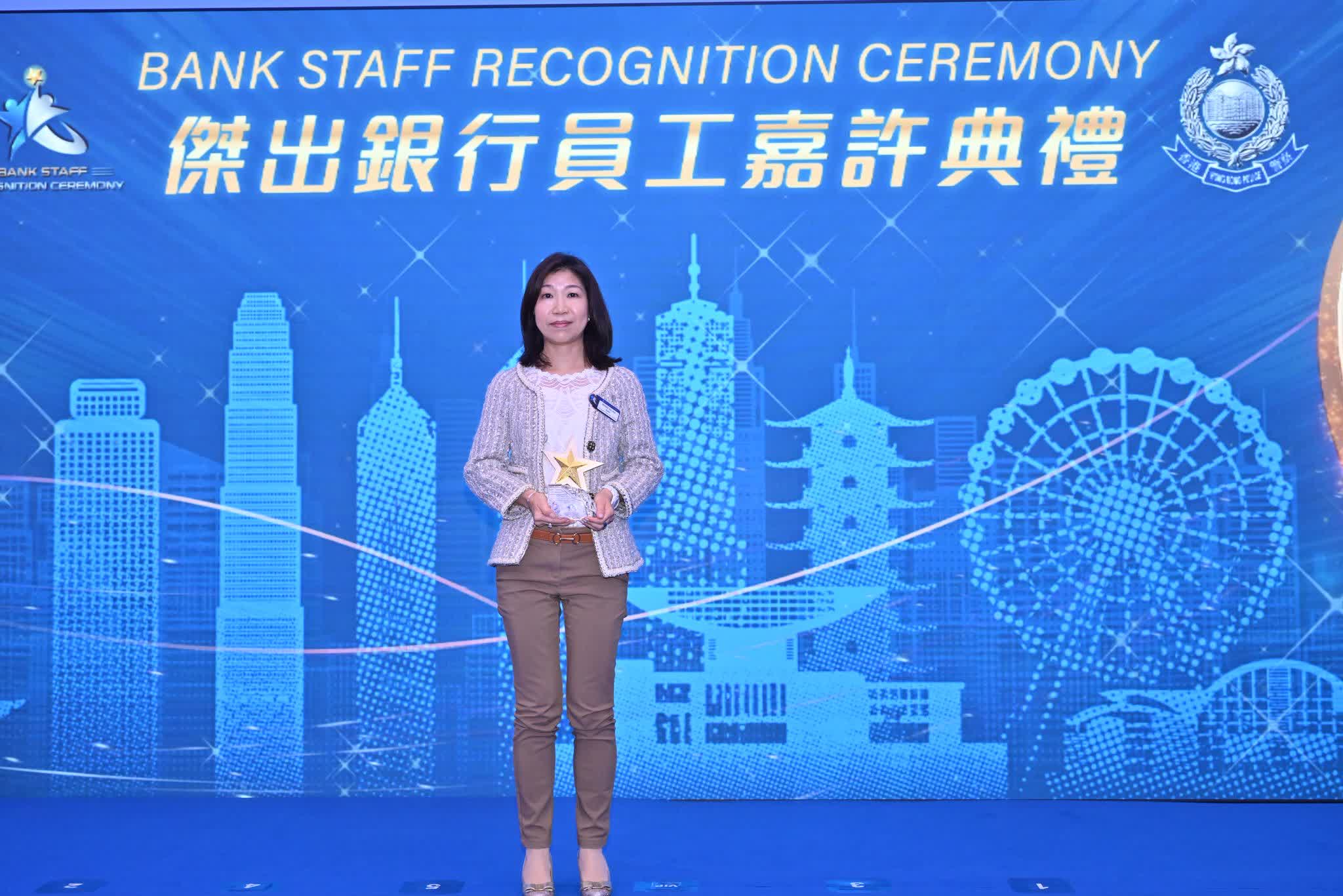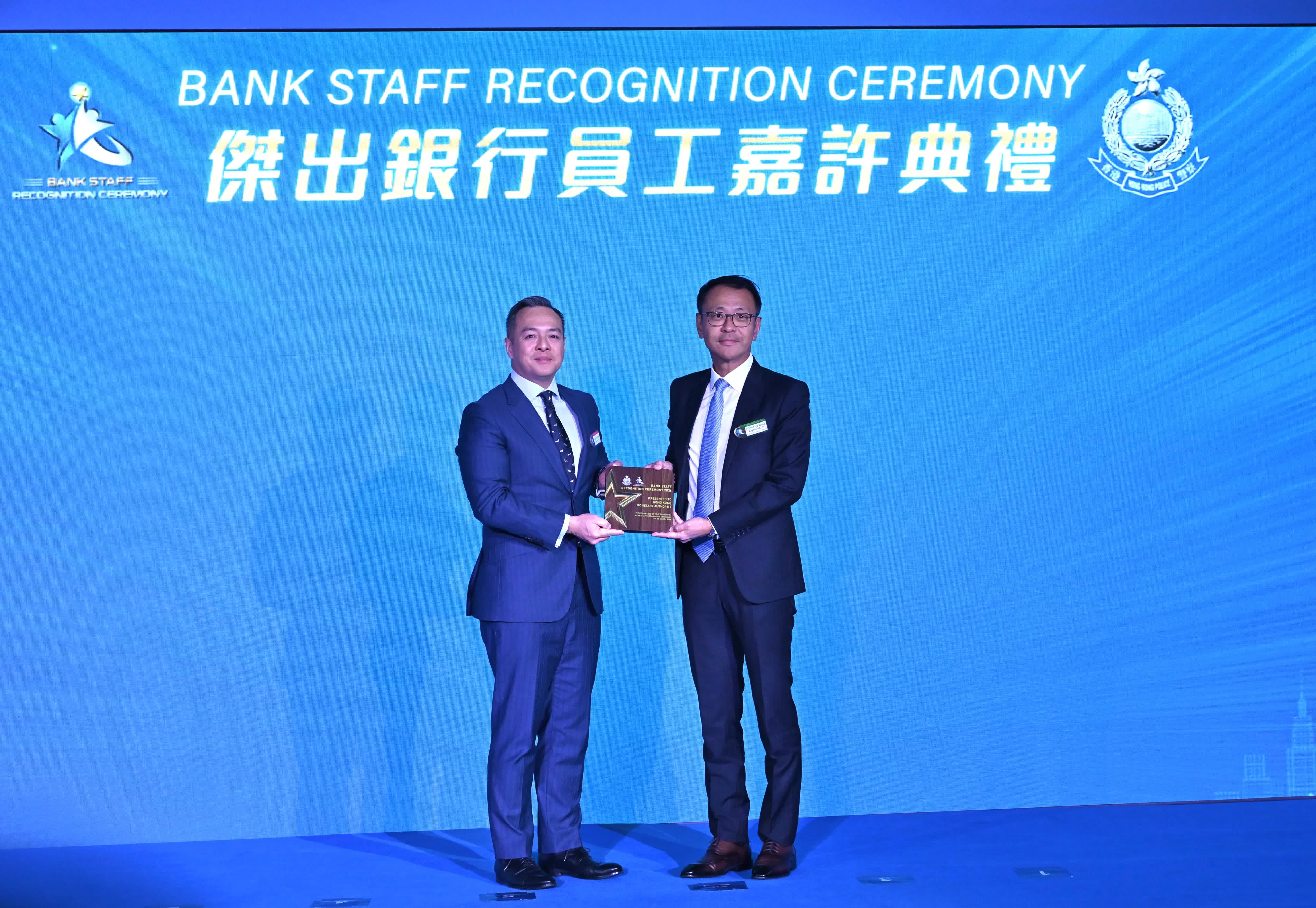 是次典禮共有19間銀行獲頒企業獎。另外,639名前線銀行職員去年主動向懷疑受騙客戶提供支援,成功阻止595宗騙案,警方向其中16名表現傑出的銀行員工頒發「傑出銀行員工大奬」。