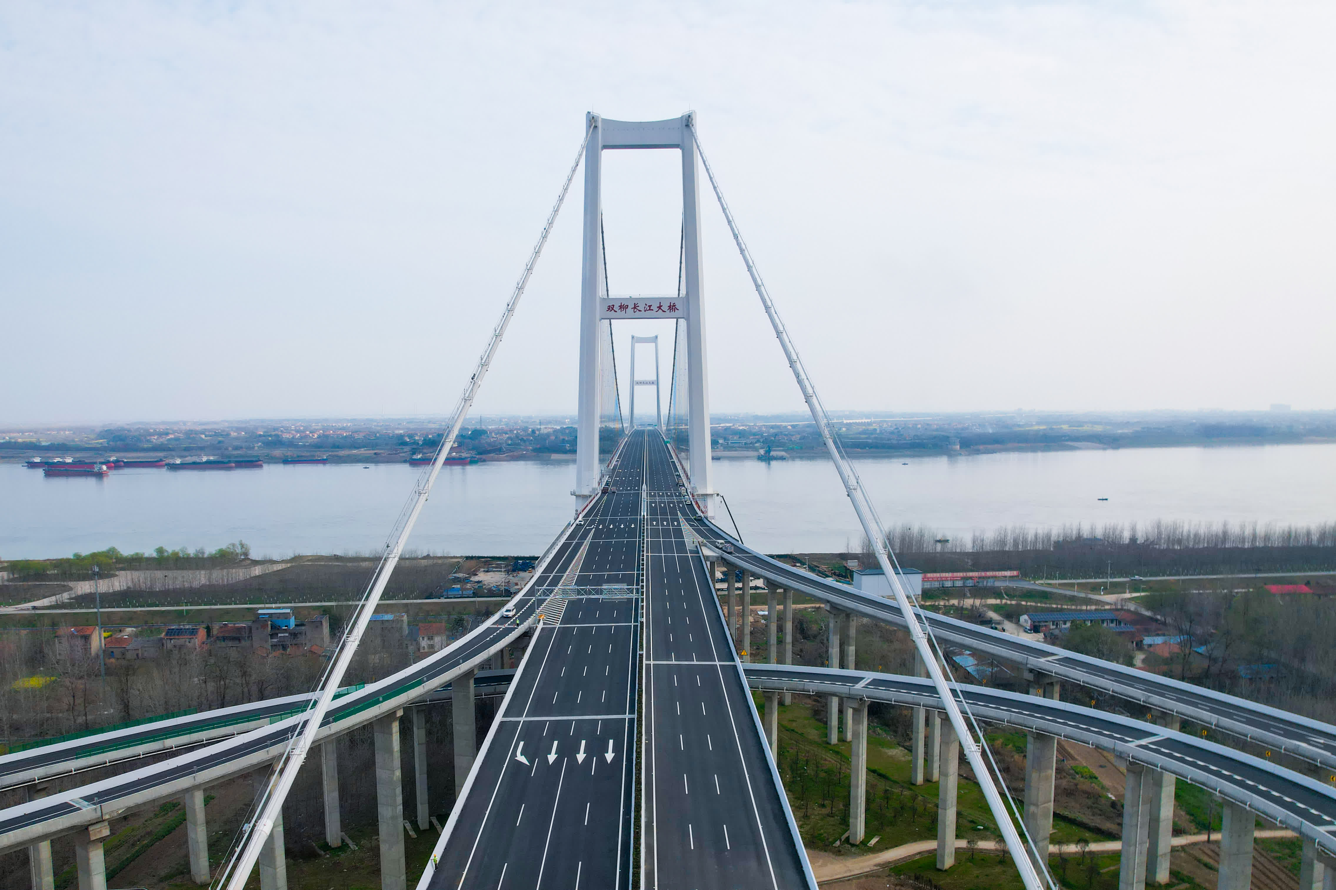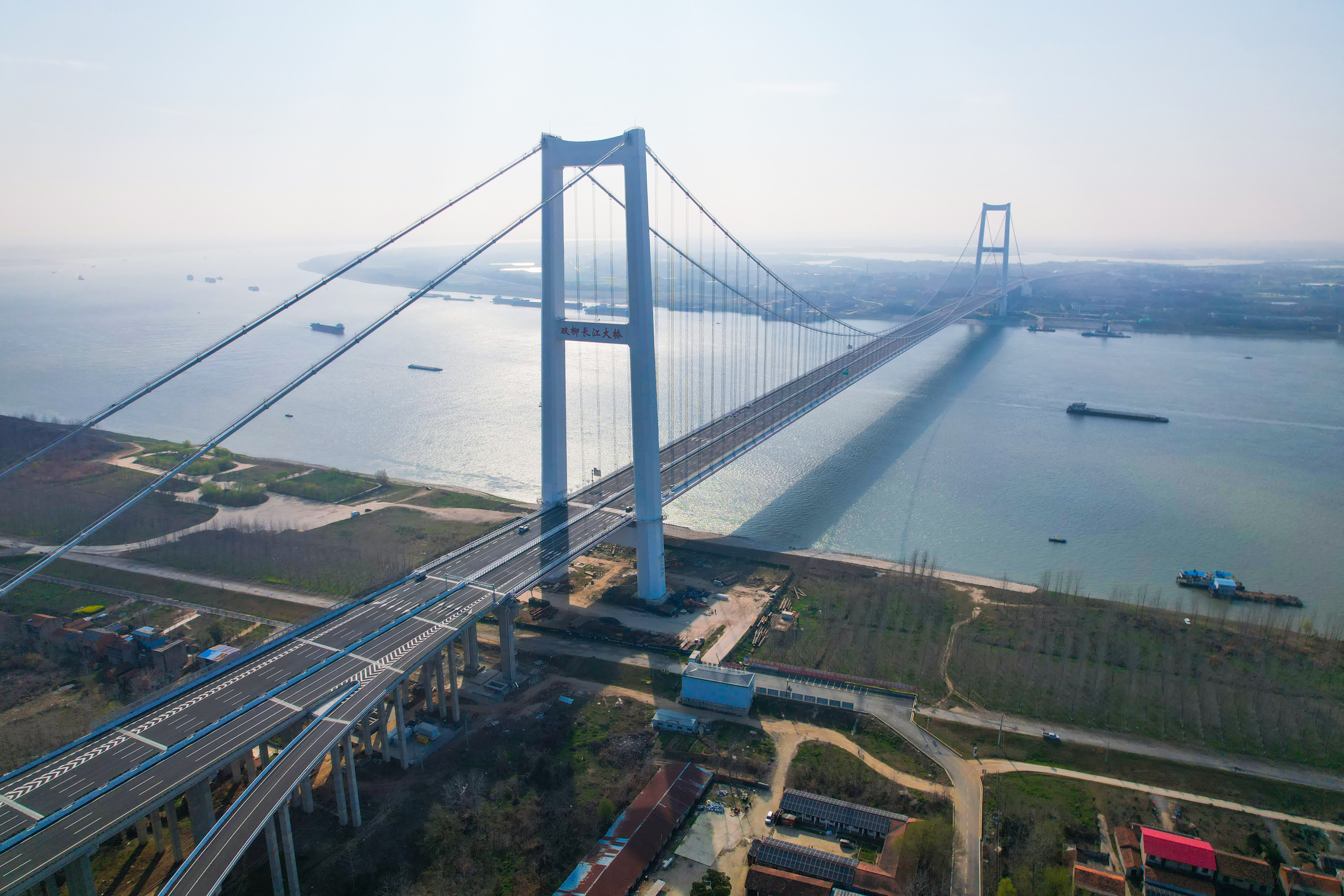 新港高速公路雙柳長江大橋及接線工程項目位於武漢市東部,由中交二航局承建的雙柳長江大橋為項目核心控制性工程,主跨1430米,橋面寬50.5米,採用雙向8車道標準建設,設計時速120公里,是目前長江上最寬的鋼箱梁懸索橋,也是武漢東大門「第一橋」。