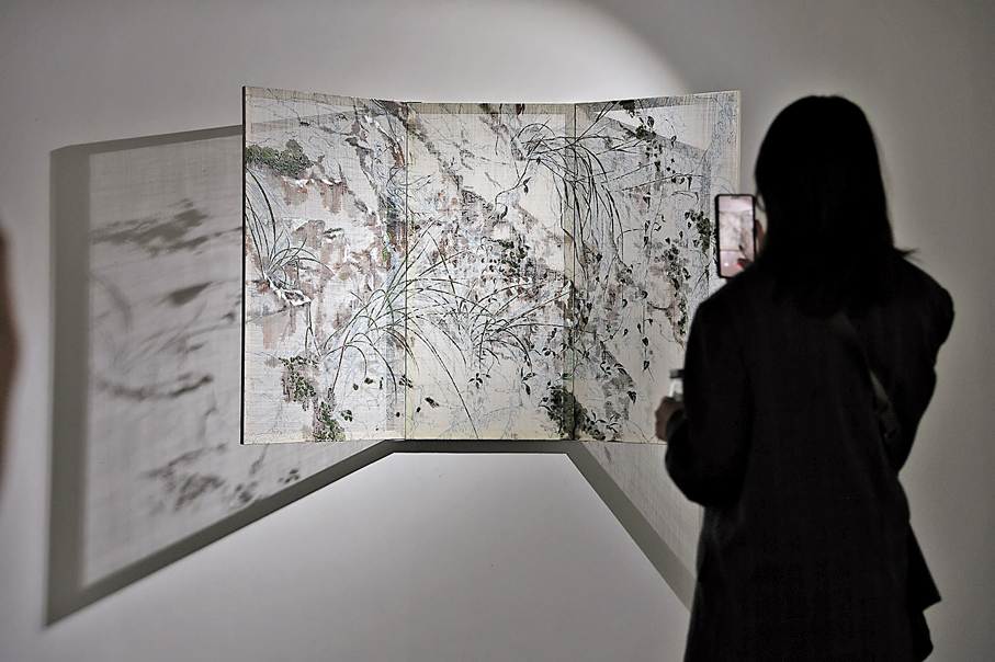 吳觀真接受香港文匯報記者訪問時表示,在香港辦展對他來說並不陌生,自己對這個城市已十分熟悉,期待通過作品讓更多人看到自然的樣貌。在材料選擇上,他使用苧麻、大漆和銀箔等自然材料,他自幼便對通透的材質感情有獨鍾,認為這些材料能呈現出自己理想中的自然氣息。