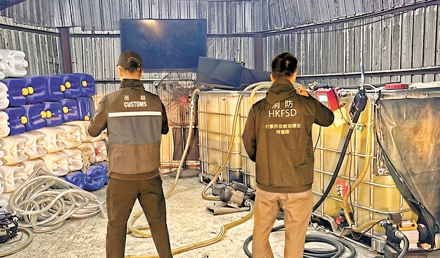 香港文匯報訊 香港海關聯同消防處及警務處前日(19日)進行打擊非法燃油活動的聯合行動,分別於上水及元朗偵破一宗非法燃油儲存倉案件及一宗非法加油站案件,檢獲共約5,600公升未完稅汽油,估計市值超過16萬元,應課稅值約3.4萬元。行動中並檢獲一批入油工具。