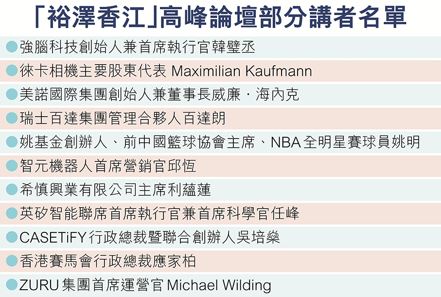而最快於下周二舉行的「裕澤香江」高峰論壇,預計吸引逾300位相關人士參與。今年是該論壇第4度舉行,以「築就傳承」為主題,並以三大主題展示香港的深厚實力與發展潛能,分別是「資管優勢成就家族財富傳承」、「文化價值基礎孕育蓬勃市場」,以及「智能科技創新驅動資本增值」,多位重量級的講者將為家辦生態圈的未來發展分享他們的前瞻性見解,包括姚基金創辦人、前中國籃球協會主席、NBA全明星賽球員姚明。