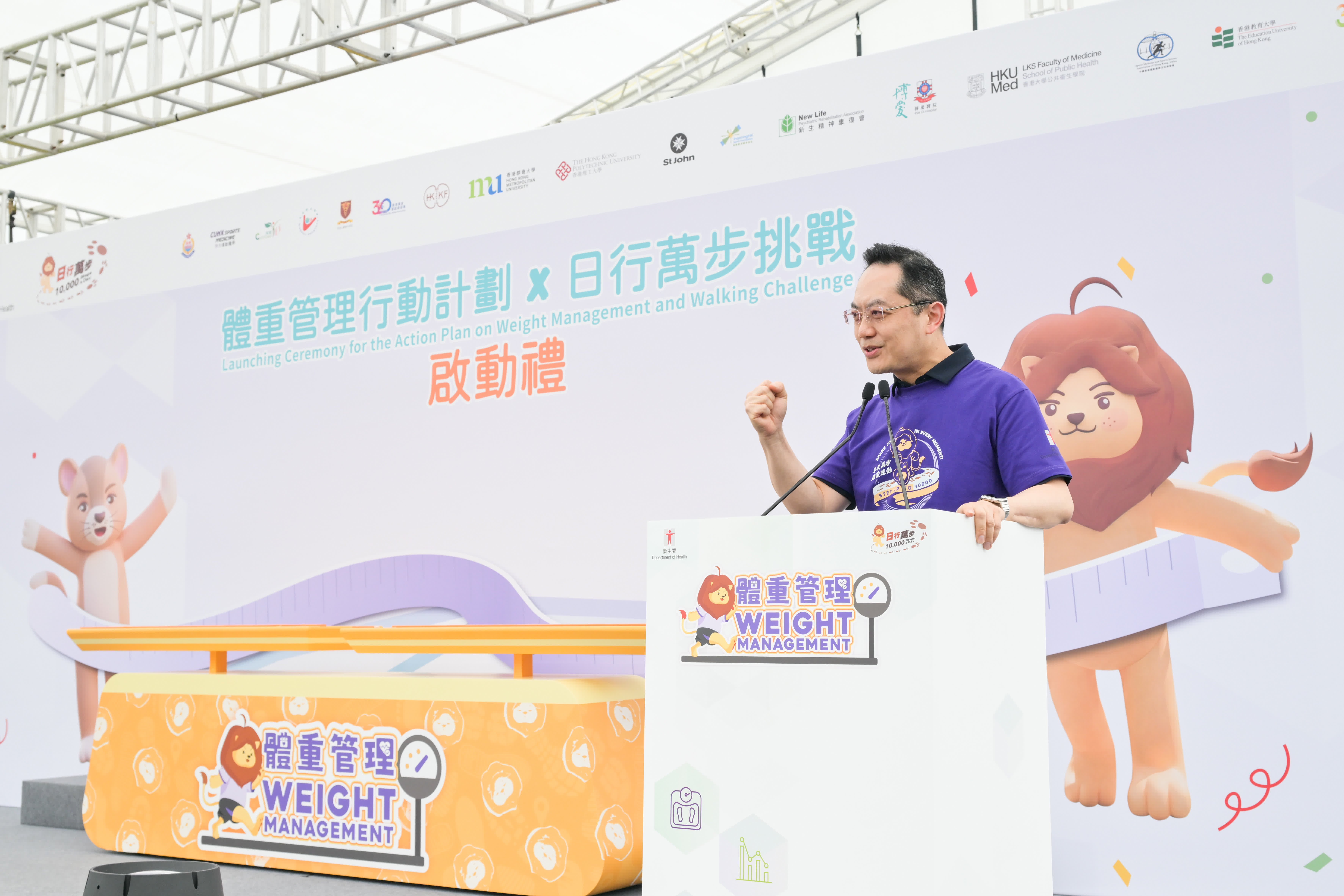 林文健醫生致歡迎辭時說:「為積極響應國家『體重管理年』的部署,行政長官在2025年《施政報告》中提出《行動計劃》,透過訂立5項方針、15項目標及47項行動項目,推動全城關注體重管理。《行動計劃》不單是一份政策文件,更是我們為未來世代所做的健康投資。而要將行動融入生活,實施『日行萬步挑戰』為每一位市民提供一條容易起步的路,例如提早一個車站下車、晚飯後與家人散步等。步行對健康有多項好處,包括改善心肺功能、強化肌骨及降低慢性病風險。無論是《行動計劃》還是『日行萬步挑戰』,希望可讓市民積極轉變,實踐健康生活模式。」
