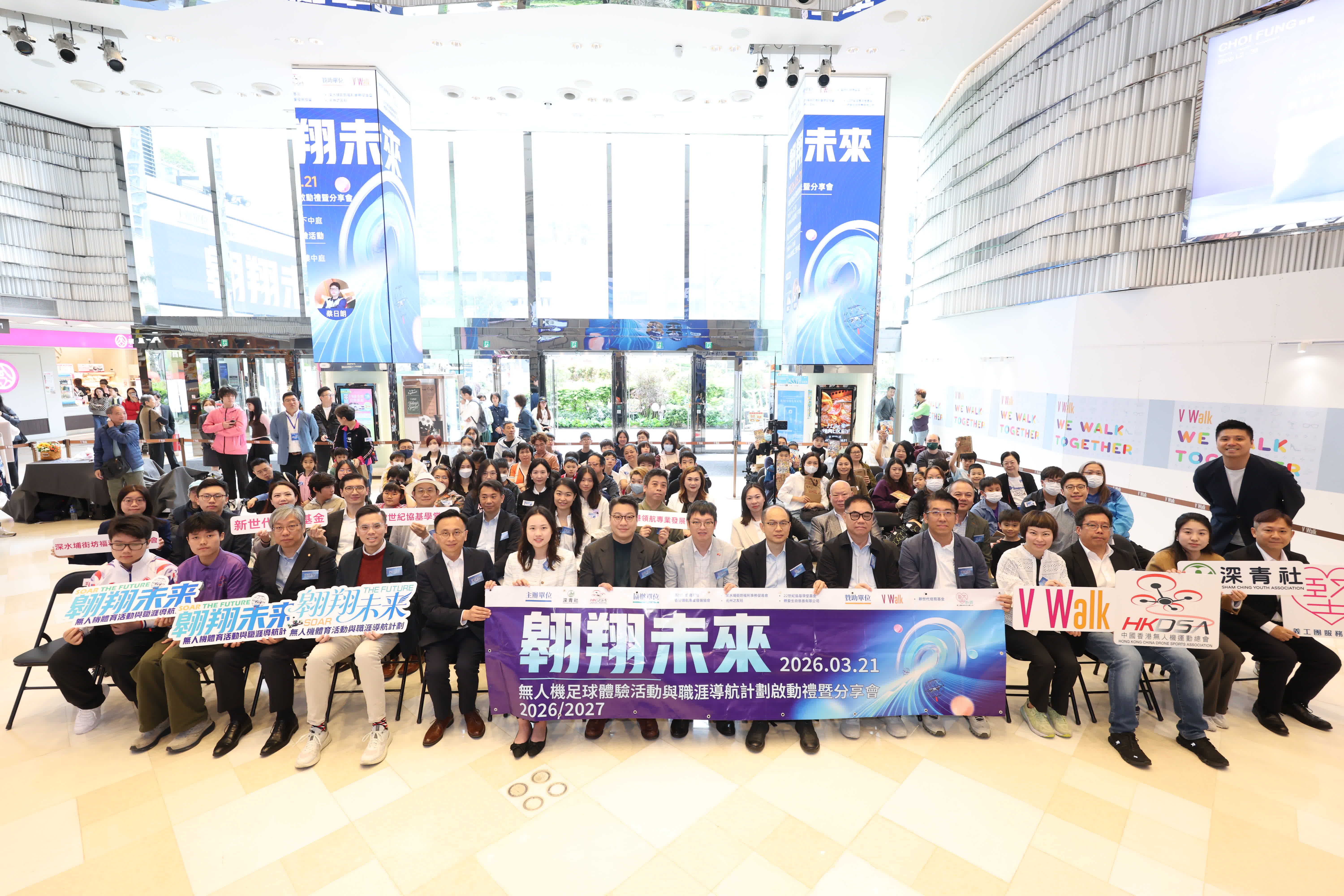 由深青社與中國香港無人機運動總會(HKDSA)聯合主辦、新鴻基V Walk商場贊助場地的「翱翔未來:無人機體育活動與職涯導航計劃」啟動禮暨分享會,今日(21日)於深水埗V Walk商場圓滿舉行。活動邀請到勞工及福利事務局副局長何啟明、創新科技及工業局局長政治助理廖添誠博士及中國香港體育協會暨奧林匹克委員會義務副秘書長黃寶基、立法會議員梁文廣、立法會議員黃永威、深水埗居民聯會理事長陳偉明、深水埗街坊事務促進會理事長梁鉅海及多位政商界及體育界嘉賓親臨主禮,共同為這項為期一年的青年發展計劃揭開序幕。計劃透過推廣新興無人機運動,啟發青年探索「低空經濟」下的多元職業路徑。