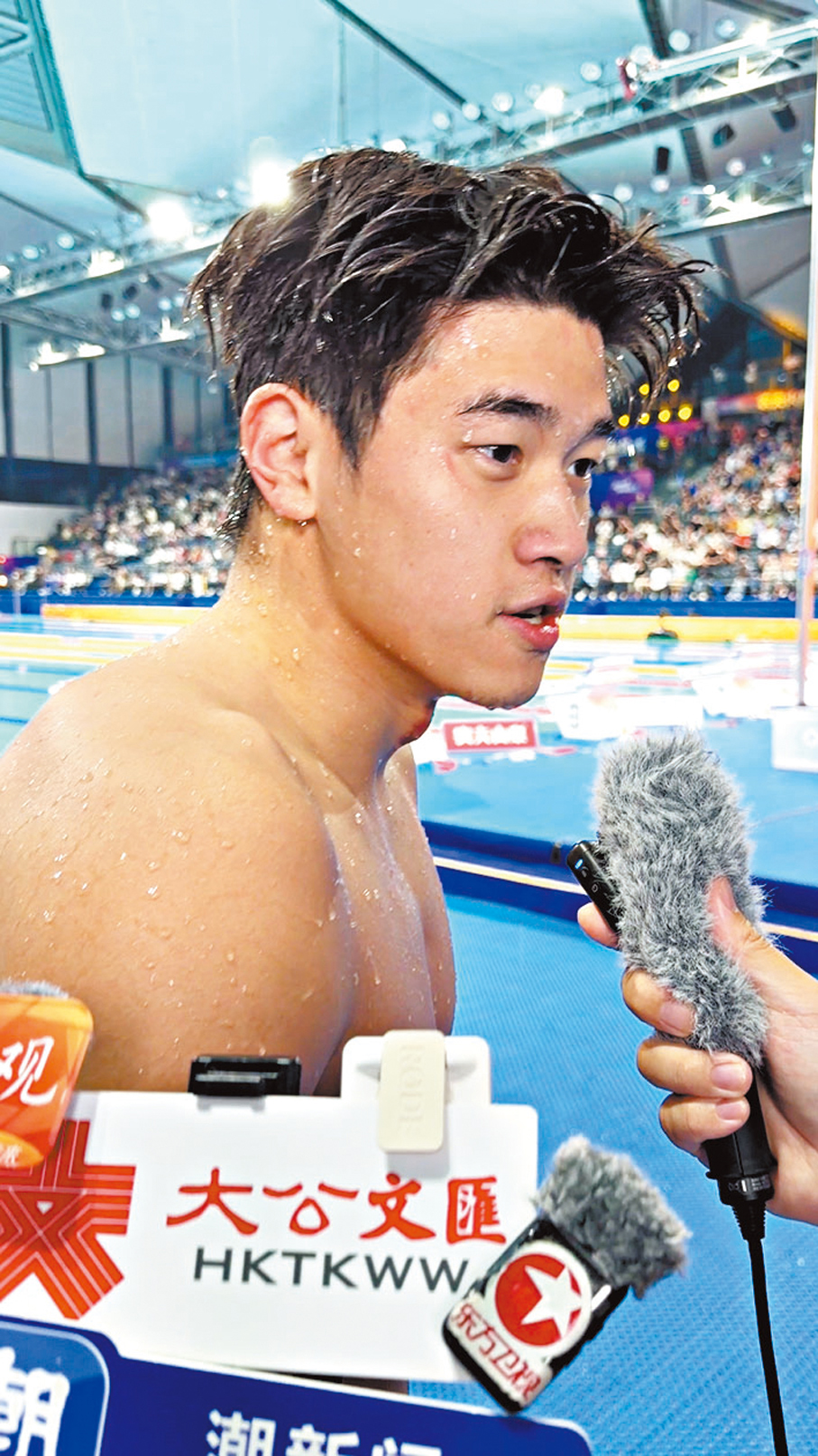 男子100米自由泳世界紀錄保持者潘展樂最終只能屈居第三,他坦言對這樣的成績稍有遺憾,並指出自己很久沒有經歷大場面,所以今天有點緊張,「本來早上預賽還留了餘地,想要晚上好好發揮;可能有點迫不及待想檢驗冬訓成果,所以未能完全發揮出來。」他表示自己的身體素質仍需提高,會繼續努力。