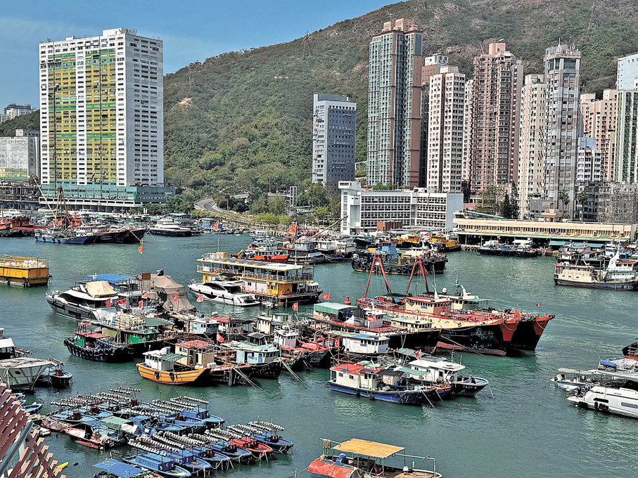 香港仔與鴨脷洲之間的廣闊水域,早於開埠前已是漁民聚居之地。時至今日,避風塘內仍泊滿傳統漁船與住家艇,與岸上現代高樓相依並立。這裏沒有喧囂的旅遊商業氣息,只有真實的漁港日常:漁民出海歸航,街坊岸邊買魚,舢舨穿梭來往。