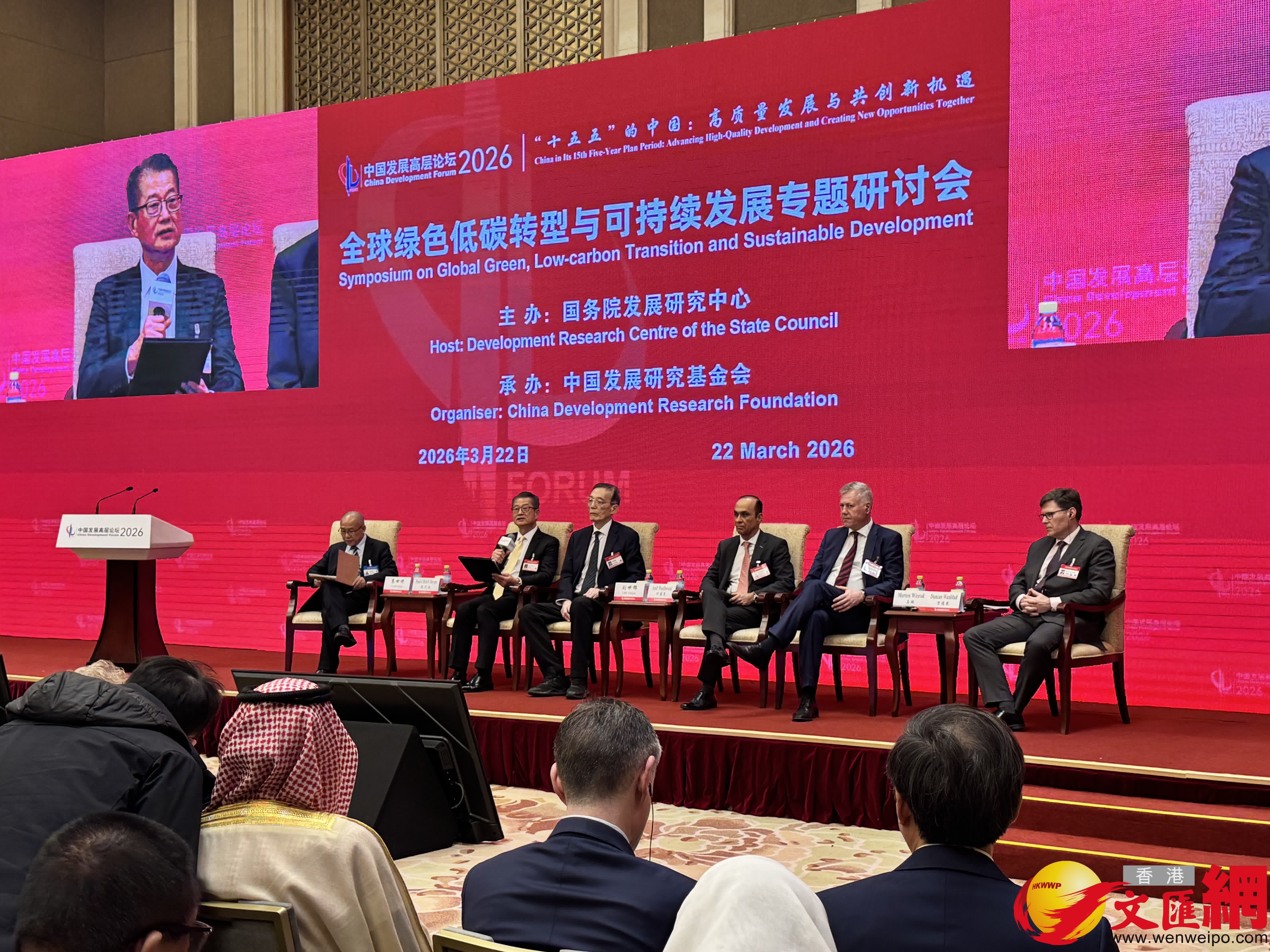 (香港文匯網記者李暢 朱燁)22日上午,中國發展高層論壇2026年年會在北京啟幕。在22日下午的全球綠色低碳轉型與可持續發展專題研討會上,香港特別行政區政府財政司司長陳茂波指出,中國不僅是全球氣候治理的參與者,更是堅定的行動派與引領者。國家正穩步邁向「3060」碳達峰、碳中和的雙碳目標,其綠色轉型步伐之快、力度之大,讓人驚嘆。「十五五」規劃把綠色化深深植入產業升級與基礎建設之中,推動經濟社會發展加快全面綠色轉型,並提出了多項具約束性的指標。香港目前正按四個方向穩步邁向減碳目標,包括凈零發電、節能綠建、綠色運輸和全民減廢。與此同時,香港也為區域乃至全球的綠色轉型貢獻「香港力量」。
