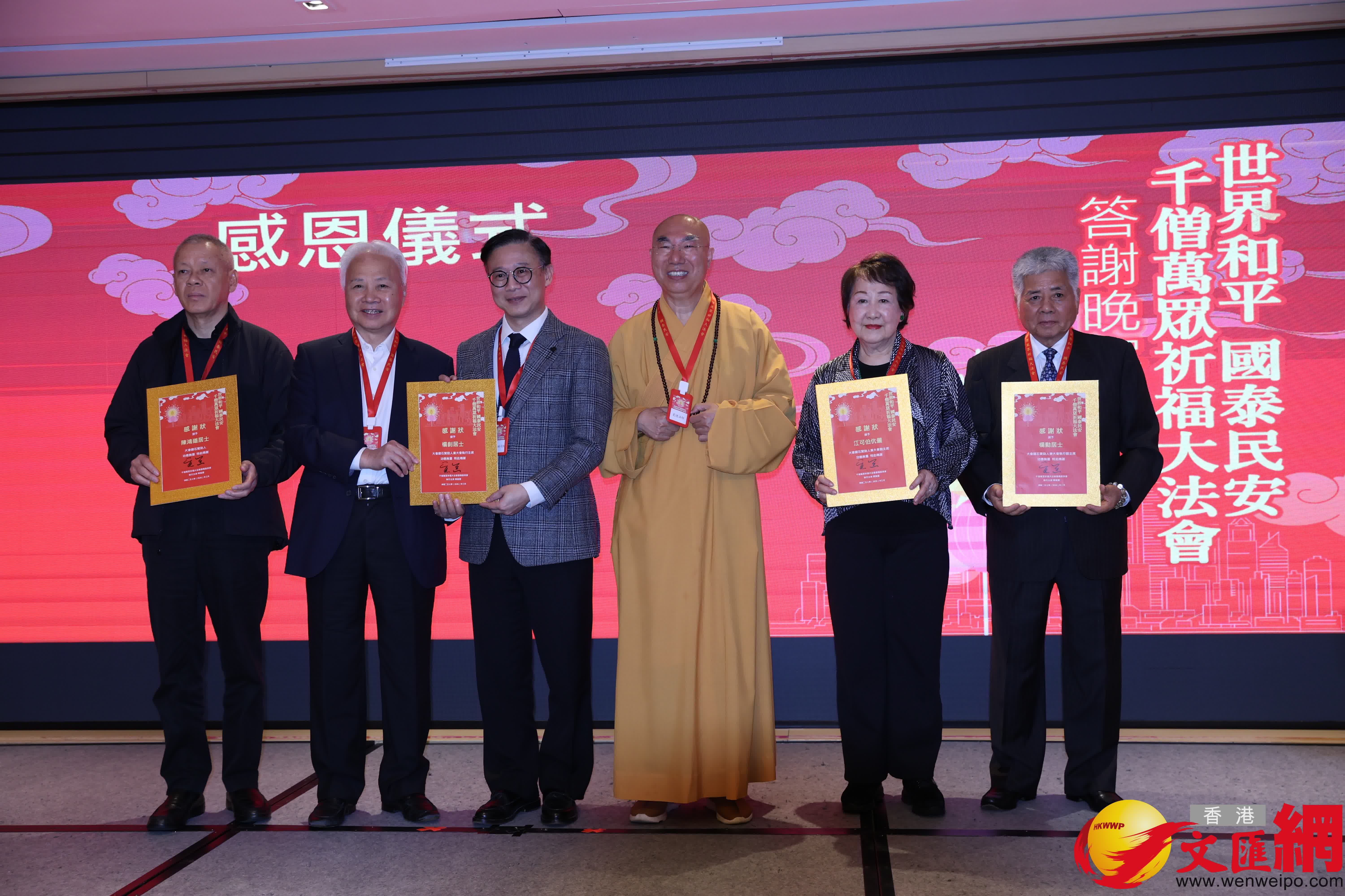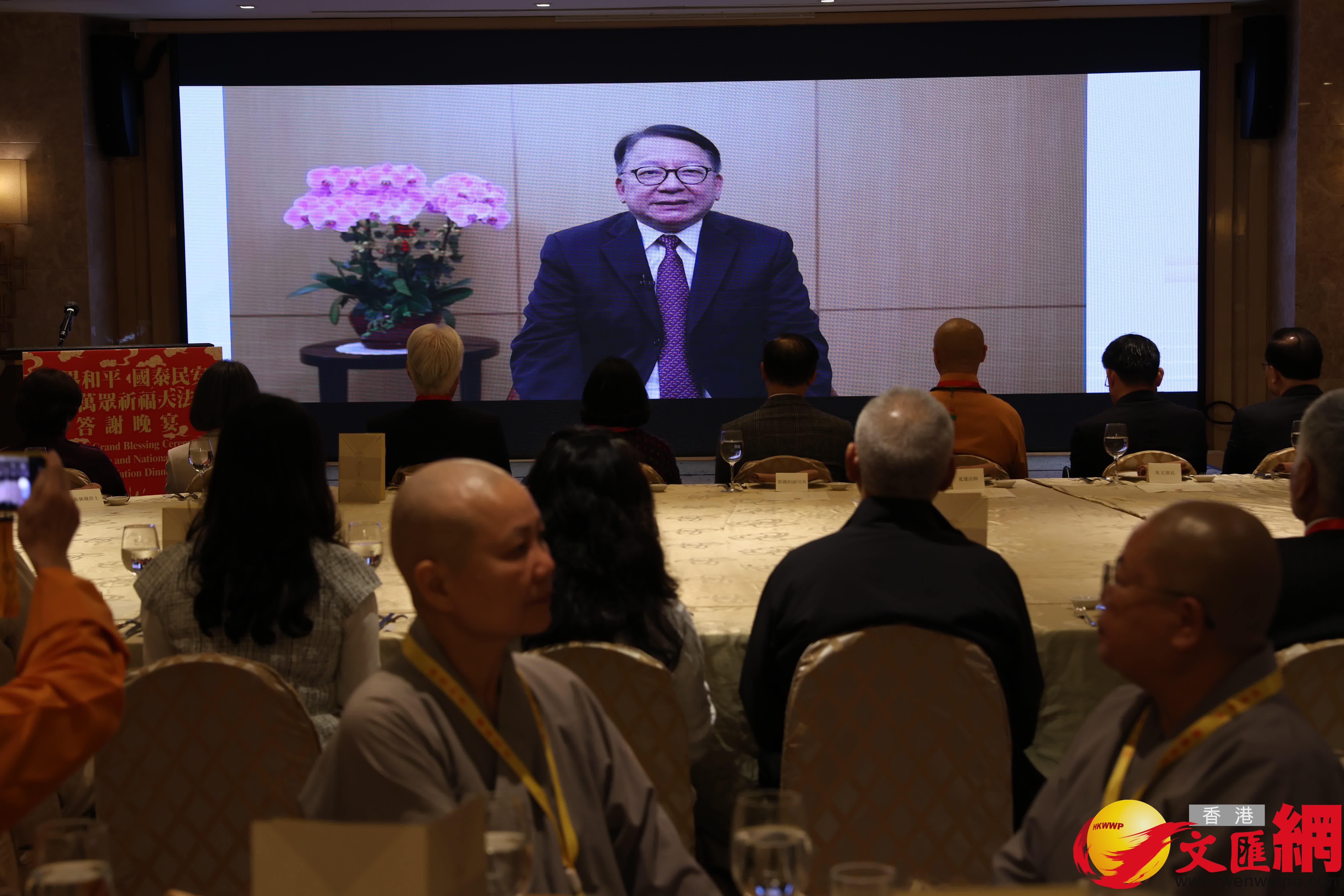 香港文匯報訊(記者 盧慧穎)「千僧萬眾祈福大法會」籌備委員會今晚舉辦答謝晚宴,特區政府政務司司長陳國基透過視像致辭表示,香港有幸在國家的護佑之下,社會安定,市民生活安穩。但是當前世界局勢複雜多變,不少地區正受戰火困擾,人民飽受苦難。今年的「千僧萬眾祈福大法會」是以佛門的慈悲精神,集合萬眾的善念,為世界和平、國泰民安誠心祝願,亦為宣揚和平的信息獻出香港的一份力量。