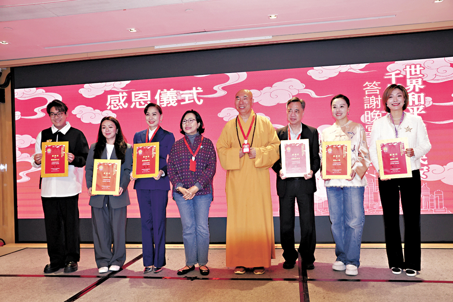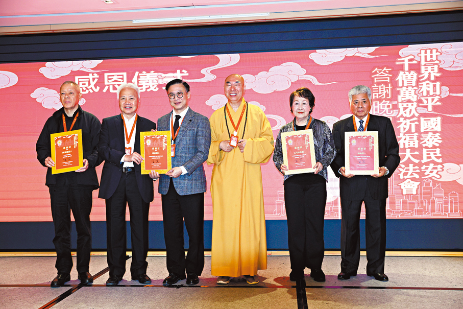 千僧萬眾祈福大法會籌備委員會於昨晚舉行答謝晚宴,旨在向每位成就「世界和平 國泰民安 千僧萬眾祈福大法會」系列活動的功德護法、法師、道場、工作人員及義工朋友,致以最誠摯的謝意。大會主席、香港特區政府政務司司長陳國基透過視像致辭時表示,香港有幸在國家的護佑之下,社會安定,市民生活安穩。然而,當前世界局勢複雜多變,不少地區正受戰火困擾,人民飽受苦難,今年的「千僧萬眾祈福大法會」是以佛門的慈悲精神,集合萬眾的善念,為世界和平、國泰民安誠心祝願,亦為宣揚和平的信息獻出香港的一份力量。