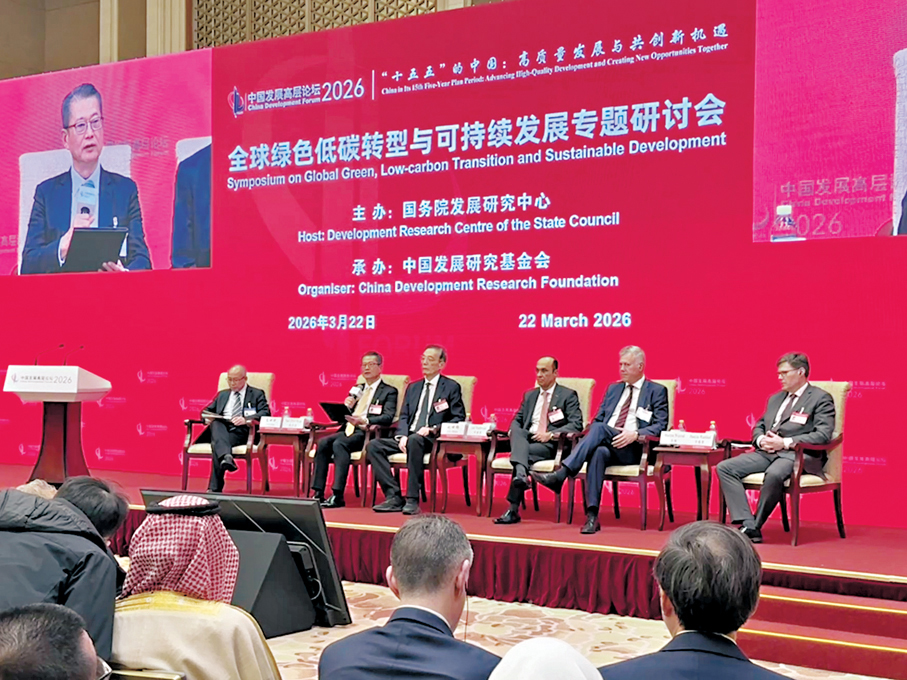 香港文匯報訊(記者 李暢、朱燁 北京報道)美國著名經濟學家、哥倫比亞大學校級教授傑弗里·薩克斯在北京參加中國發展高層論壇2026年年會時,對香港文匯報記者表示,粵港澳大灣區將成為綠色和數字金融領域的全球領導者。世界各地投資者已開始關注香港,為這些創新項目融資,並為中國技術與世界市場架起合作橋樑。在當天舉行的全球綠色低碳轉型與可持續發展專題研討會上,香港特別行政區政府財政司司長陳茂波就表示,香港致力以「綠色金融+綠色科技」,為區域乃至全球的綠色轉型貢獻香港力量。