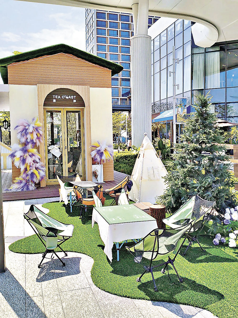 大家望向主拱門背後,可見到現代高樓及海邊建築,復古與現代交融,怎樣拍也超美。 至於小鎮的休息區「杉林營地」提供不少露營椅,還有像真度極高的「營火」、木材讓遊客用作道具打卡,輕鬆化身「山系旅人」,大家逛累了坐一會發發呆,低角度取景更可拍出森林風靚相,輕鬆感受春日浪漫。