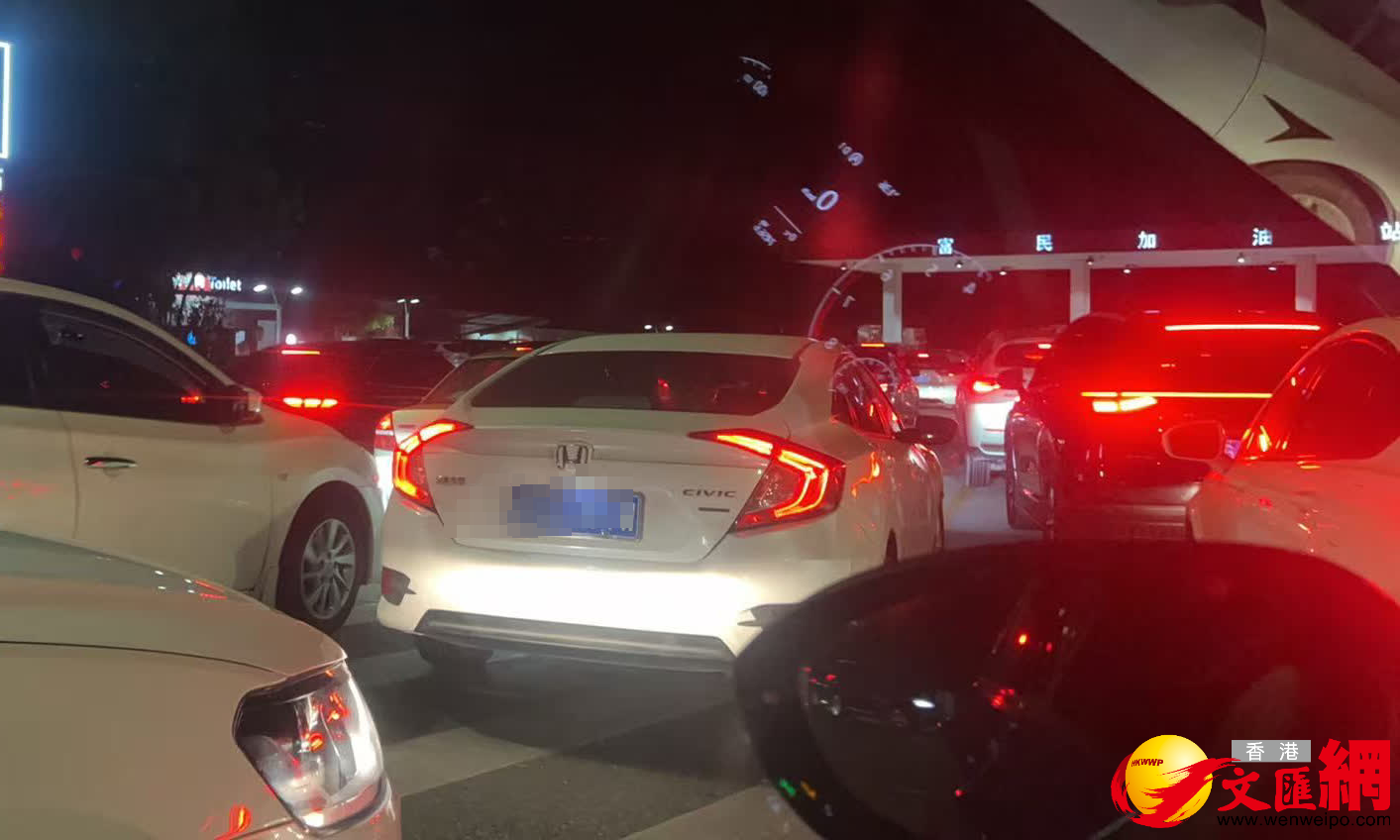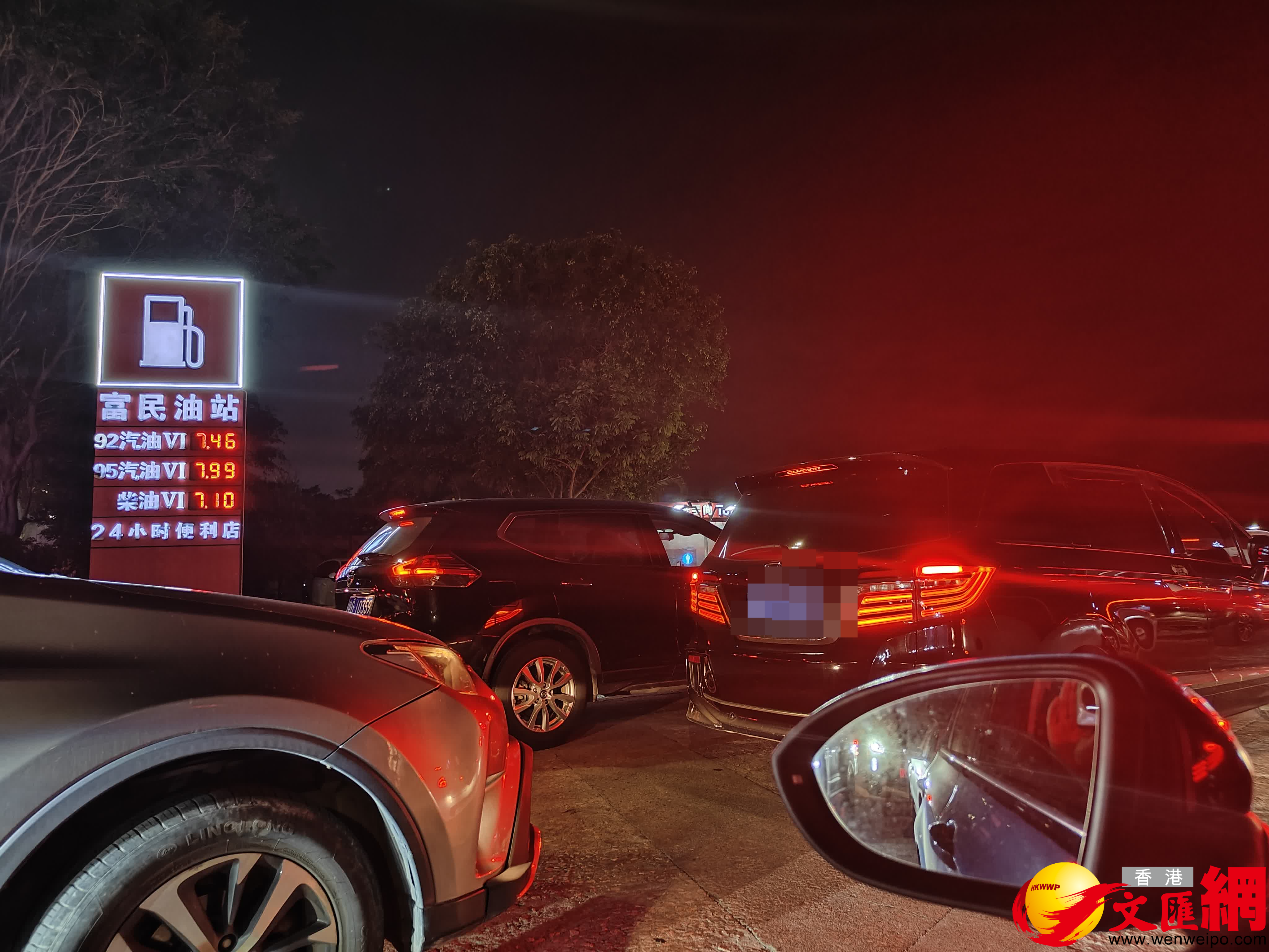 記者22日晚在珠海、廣州等多地的加油站看到,提早前來加油的車輛排起了長隊,車主們都說「加滿油」。在珠海的一家加油站,4條加油車道均排起了車龍,很快其中兩條車道沒油可加,原先排了這兩車道的車輛只能交錯地穿插到另外兩條車道裏加油。