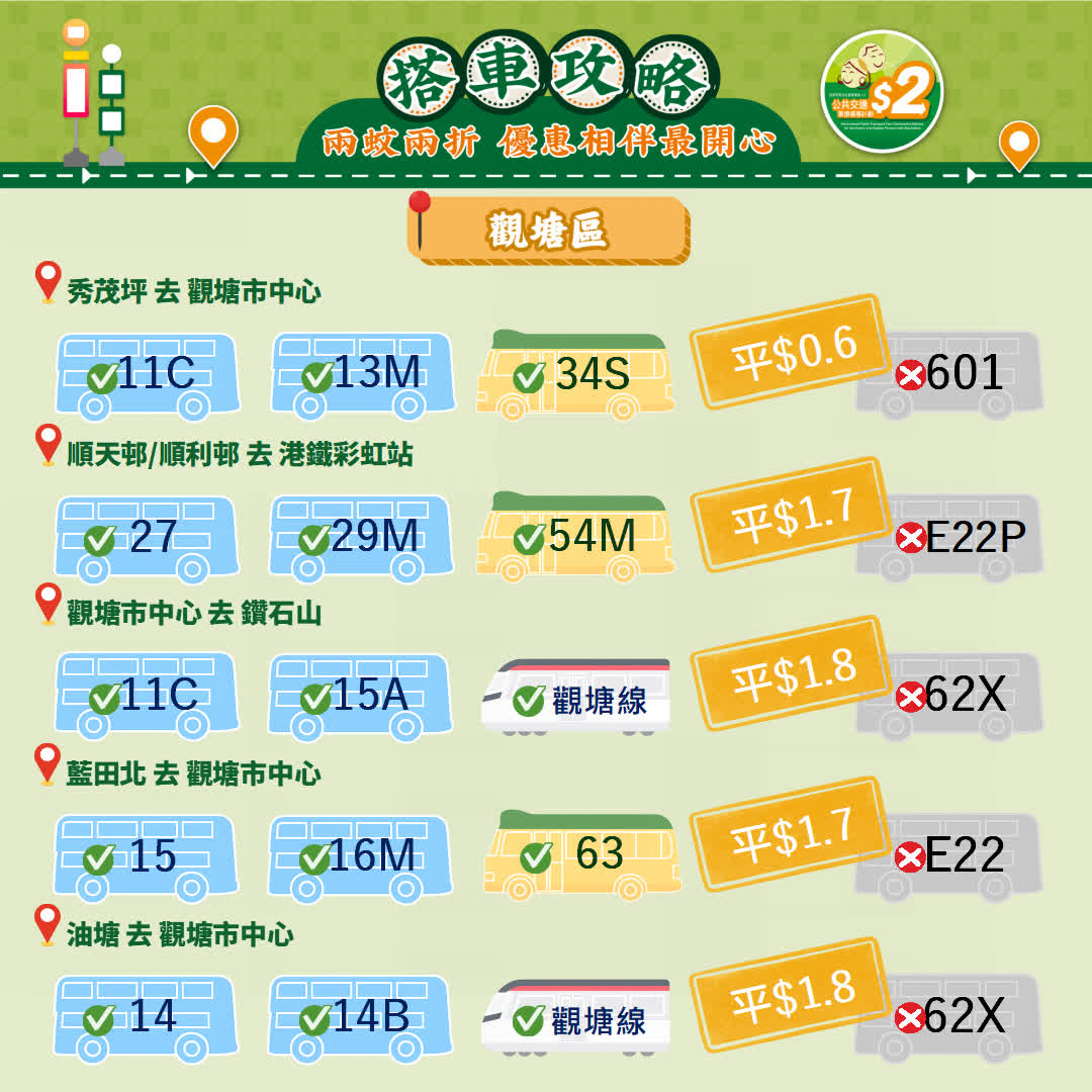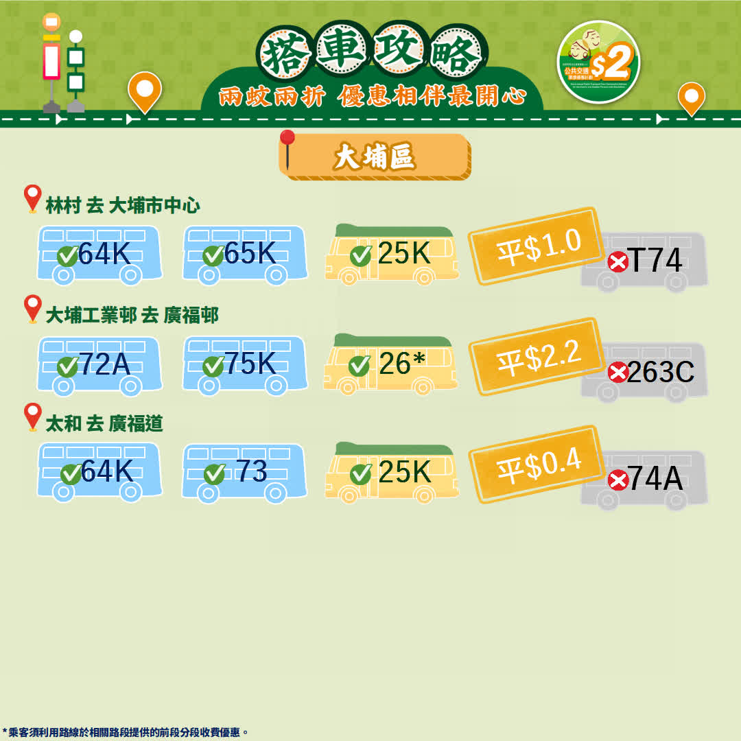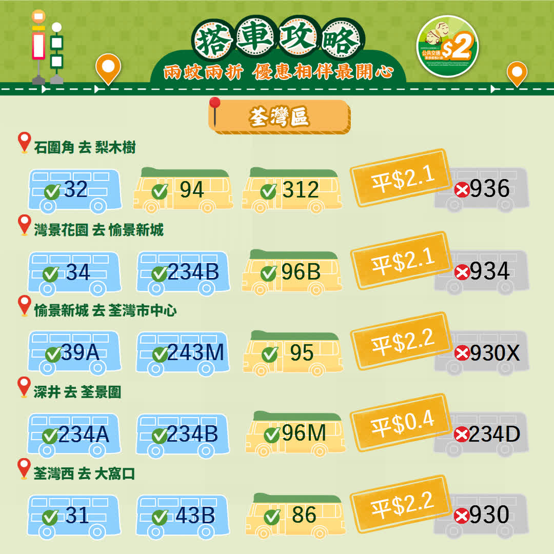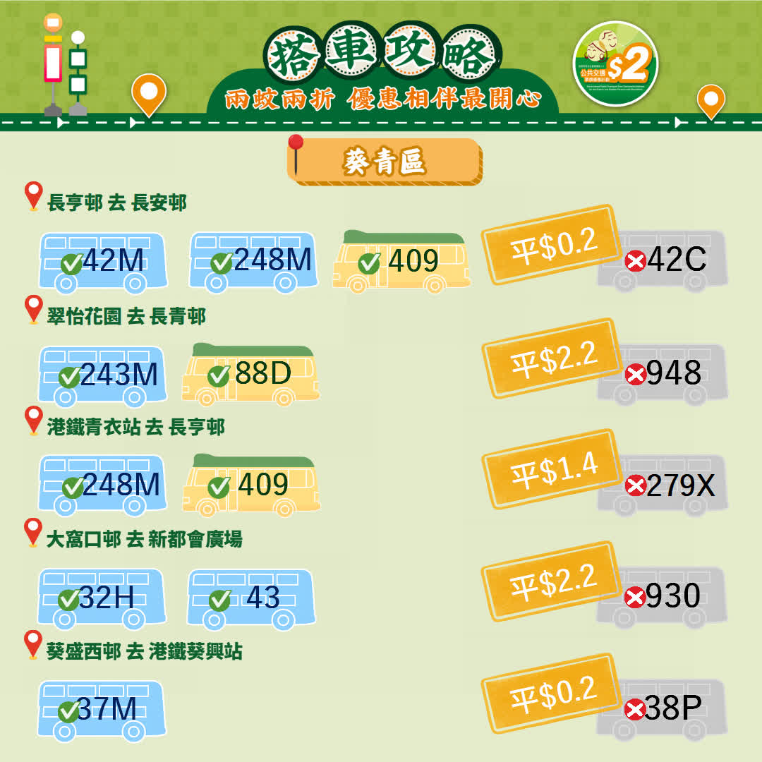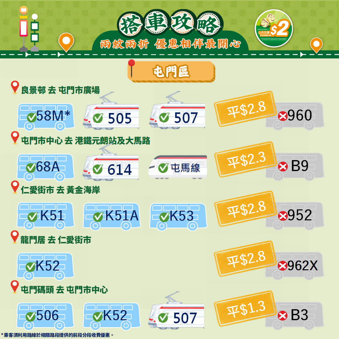 政府今日(23日)宣布,由2026年4月3日起政府長者及合資格殘疾人士公共交通票價優惠計劃(2元優惠計劃),由2元劃一收費調整為「兩蚊兩折」,即成人票價低於或等於10元,受惠人士維持繳付2元車費,而成人票價高於10元則受惠人士須繳付成人票價的兩折,轉乘車程同樣適用。