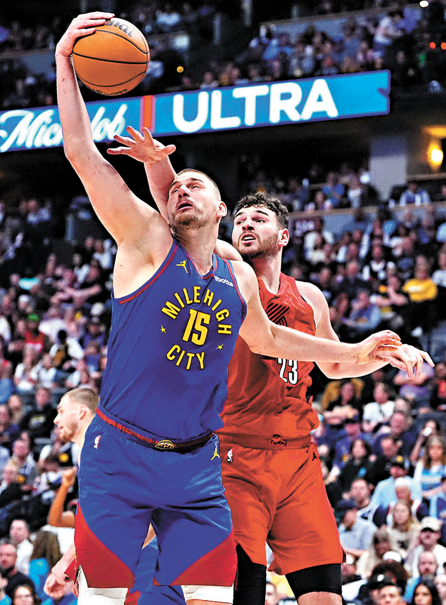 香港文匯報訊(記者 郭正謙)NBA常規賽進入最後直路,金塊憑藉王牌中鋒祖傑交出22分、14籃板、14助攻的「大三元」表現,以128:112擊敗拓荒者,暫列西岸第五名擺脫附加賽危機。今場亦是祖傑第85次打完三節就交出「大三元」,寫下NBA自1997/1998賽季以來的最多紀錄。