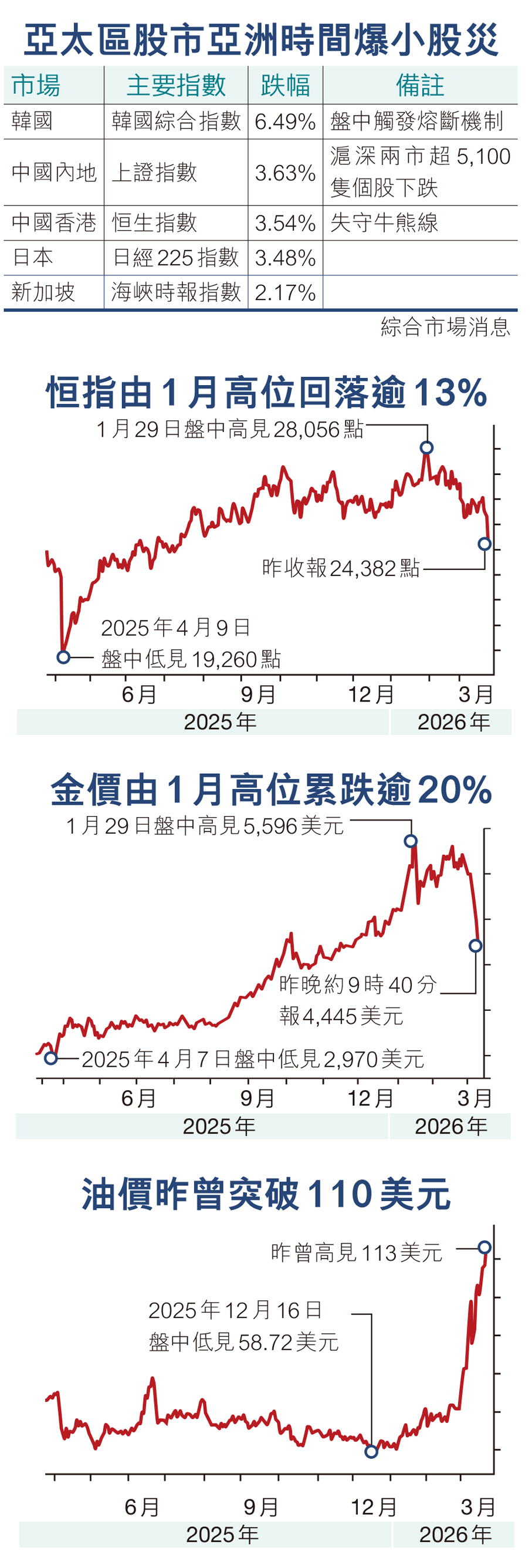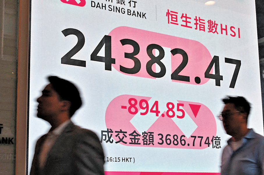 受中東局勢惡化拖累,昨日亞太區股市於亞洲時間爆發小股災。其中,韓國股市下跌6.49%,日本股市下跌3.48%,上證綜合指數下跌3.63%,新加坡股市下跌2.17%。港股亦全日表現疲軟,大市昨早裂口低開488點,報24,789點,已是全日高位,其後跌幅持續擴大,午後最多曾跌1,073點,低見24,203點。恒指最終收報24,382點,跌894點或3.54%,大市成交3,686億元。