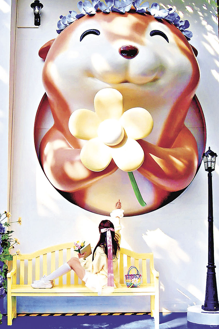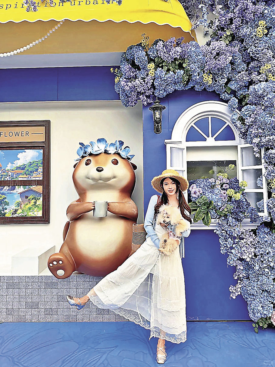廣場內的戶外街區北廣場,近日全新升級打造一個以「獺獺的世界」作主題的「春日靈感花園 - 萬花入境」打卡場景,將春日的溫柔藏在花海之中。現場布置簡約不花巧,白色牆配合木系元素裝潢,並布置成藍色、紫色的花海,令遊客身心舒暢。場內展出多個大大隻水獺裝置,包括走田園風及走甜美可愛風,大家可以不同角度與水獺打卡,與「它」享受一個愜意又舒適的下午。