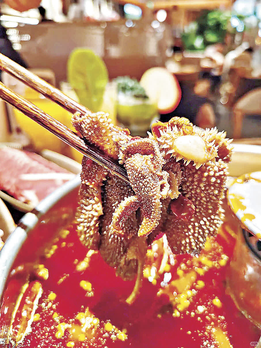 巴奴的靈魂鍋底「野山菌湯」,每日以多種野山菌類現熬4小時,湯色清澈、香氣濃郁。湯底上枱滾熱後食客先喝三碗溫潤暖胃,不管是單喝還是涮菜品也是無敵,大家不妨配「烏雞卷」,一啖肉一啖湯,混合了菌香,肉味更出,兩者絕對是神仙CP;至於另一鎮店之寶「經典毛肚」,採用獨特木瓜蛋白酶嫩化技術,確保毛肚脆嫩口感,每一片也比手掌大,在鍋中涮約15秒,脆嫩無異味,令人一試難忘。